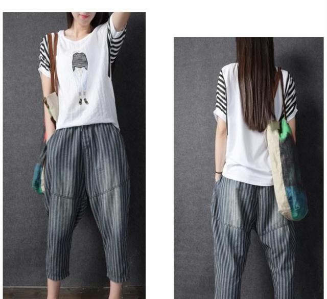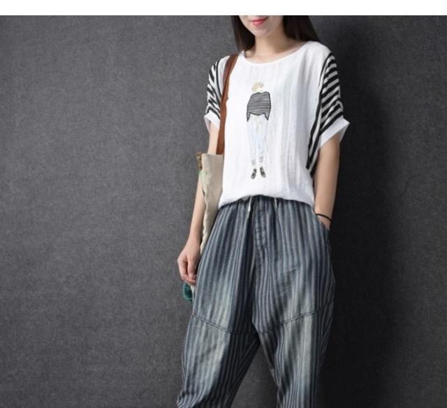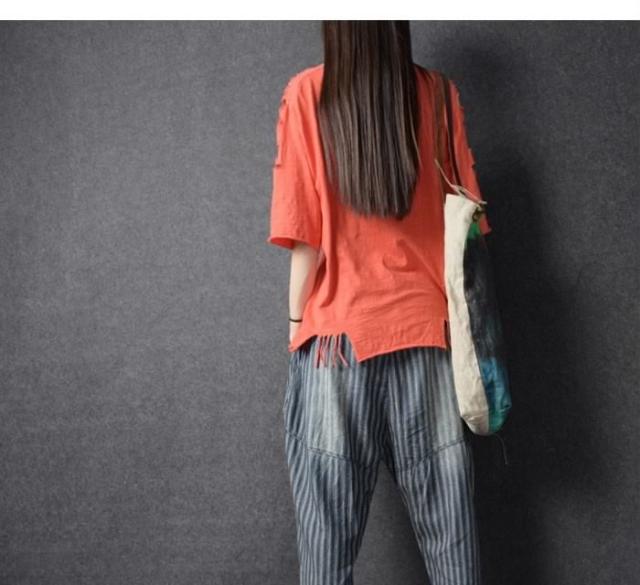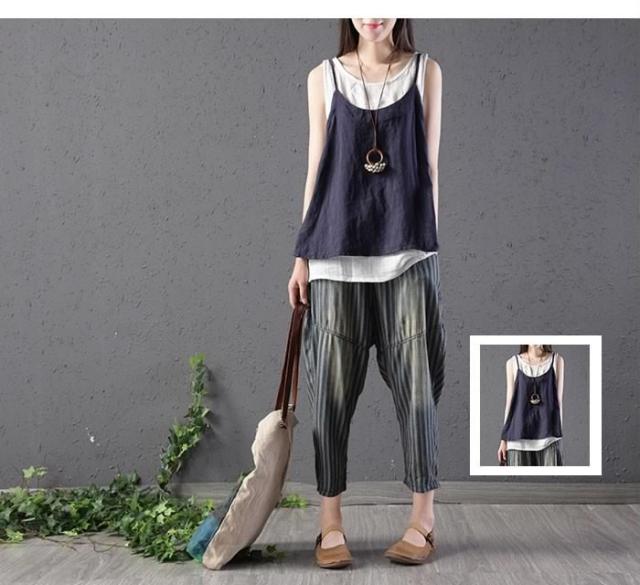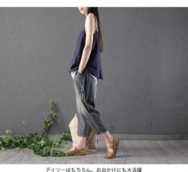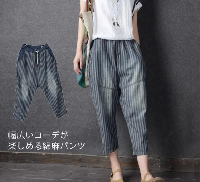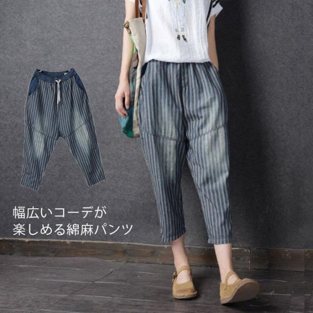 送料無料レディース綿麻パンツストライプパンツリネンパンツ九分丈パンツアンクルパンツゆるパンツカジュアルパンツ薄手ボトムスドロスト
