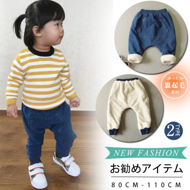 デニム サルエルパンツ 裏起毛 男の子 女の子