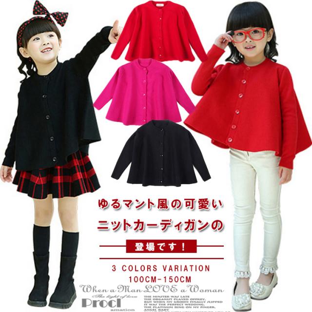 ゆるマント風ニットカーディガン ニットカーディガン 子供服 キッズニット カーディガン マント クルーネック 無地 ゆるニット