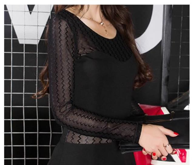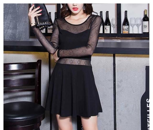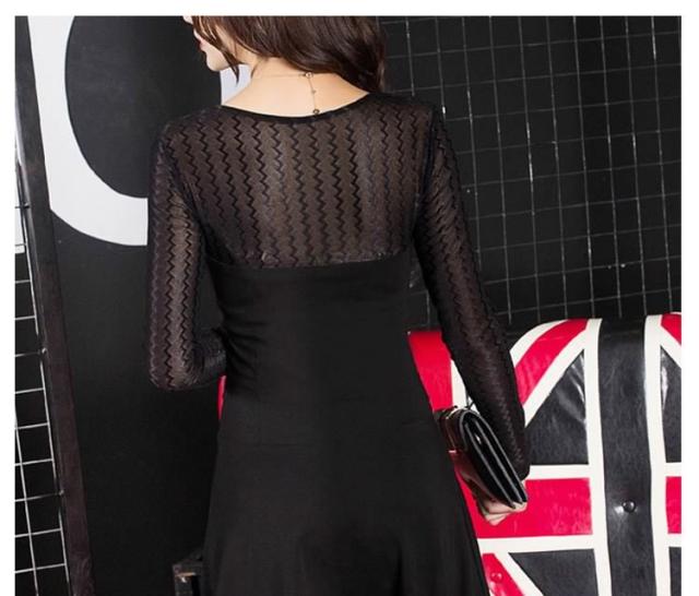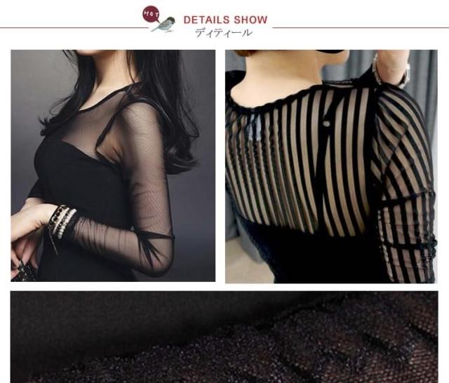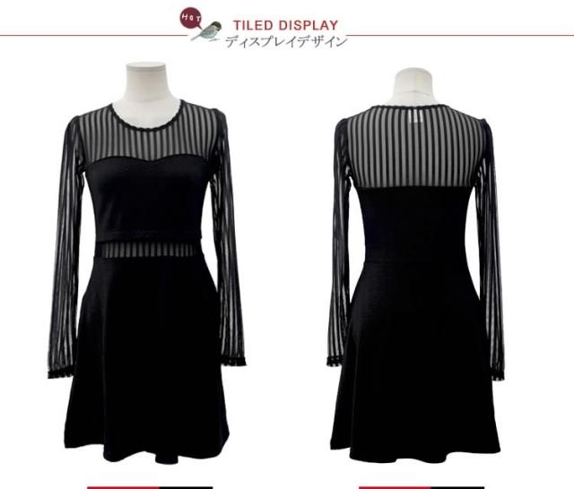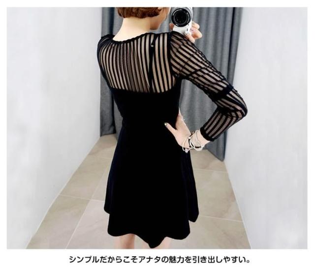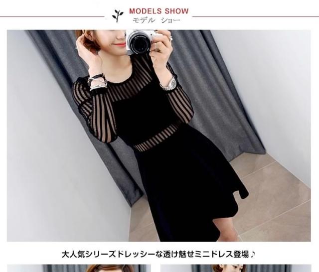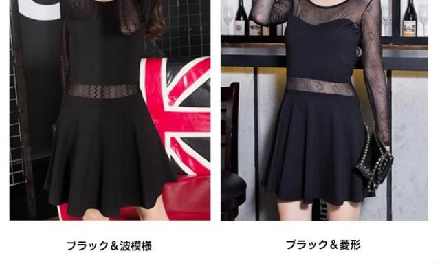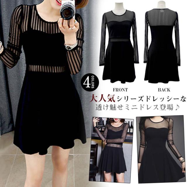 チラッと肌魅せ 素材mix シースルーセクシー 長袖ミニーワンピース
