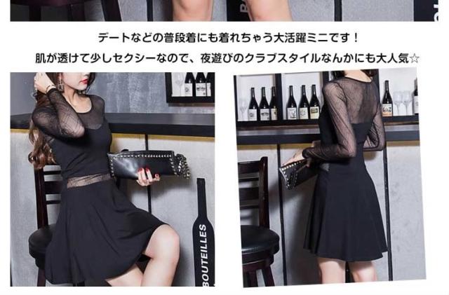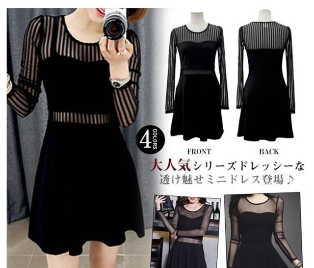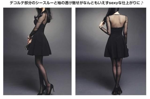 | 大人気シリーズドレッシーな透け魅せミニドレス登場♪シンプルだからこそアナタの魅力を引き出しやすい。デコルテ部分のシースルーと袖の透け魅せがなんともいえずsexyな仕上がりに♪デートなどの普段着にも着れちゃう大活躍ミニです!肌が透けて少しセクシーなので、夜遊びのクラブスタイルなんかにも大人気☆ Aラインのシルエットで気になるお尻周りは隠してカバー♪パーティーや結婚式、二次会、謝恩会、披露宴と様々な場面で使えます!!シックなブラックでクールに決めて☆豊富な3サイズ展開なので、背の高い方も小がらな方も安心!! | |