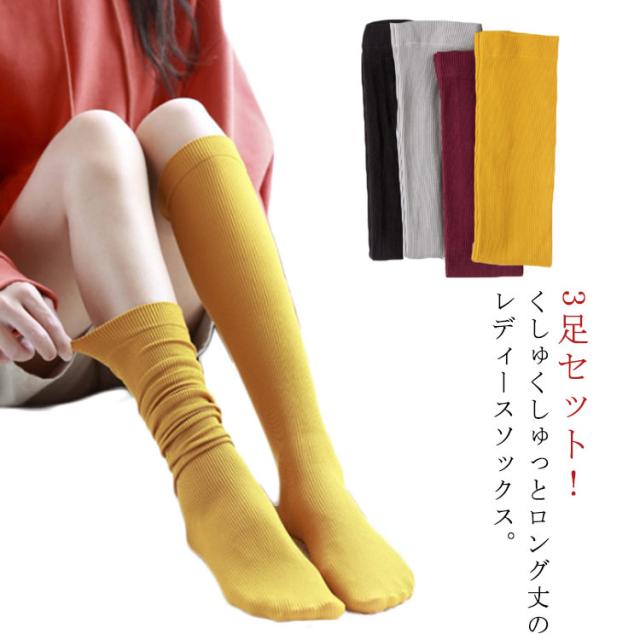 | 3足セット!くしゅくしゅっとロング丈のレディースソックス。立体縫製でつくられ、かかとがあるタイプ!伸縮性もあり、履き心地抜群☆足元の冷え・防寒対策にピッタリなアイテムです♪ | |