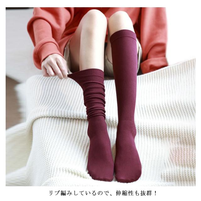 靴下 レディース ソックス くつ下 クルーソックス ルーズソックス ハイソックス レディース靴下 ファインリブ くしゅくしゅ おしゃれ 可愛い 女の子 綿 春夏 秋冬 無地