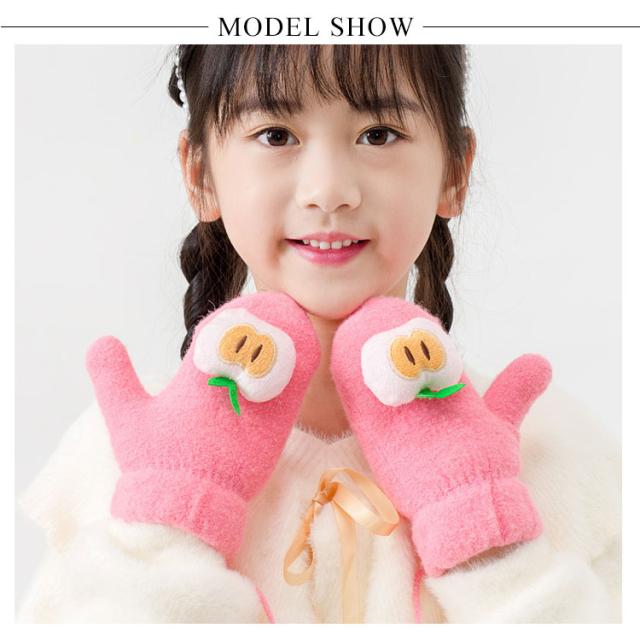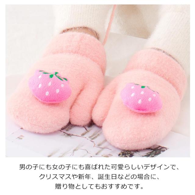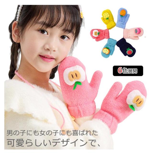 子供用ミトン 手袋 防寒 キッズ 可愛い 果物 防寒手袋 紐付き 厚手 裏起毛 暖かい 保温 防風 女の子 男の子 子供 幼稚園 アウトドア 通園 通学 旅行 プレゼント 新作
