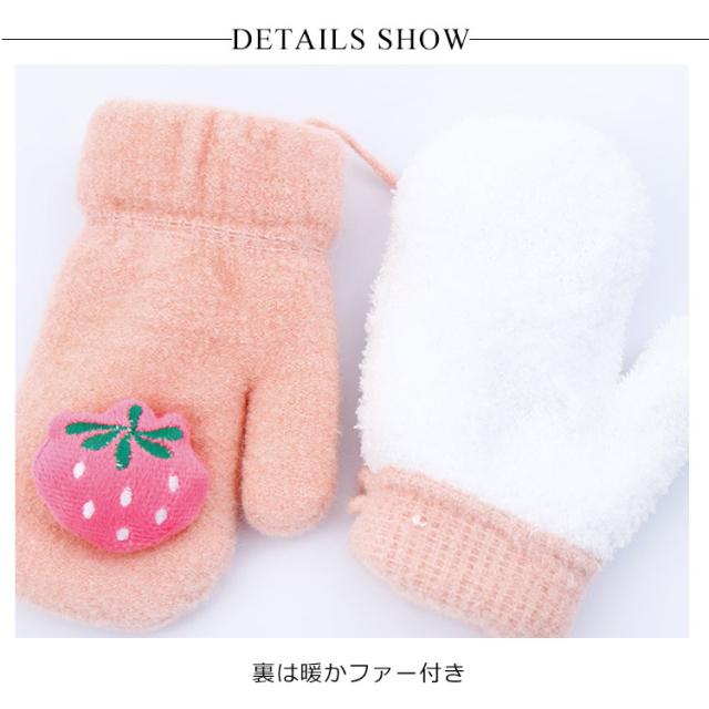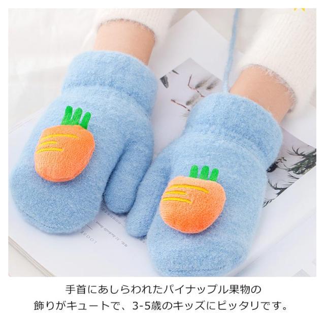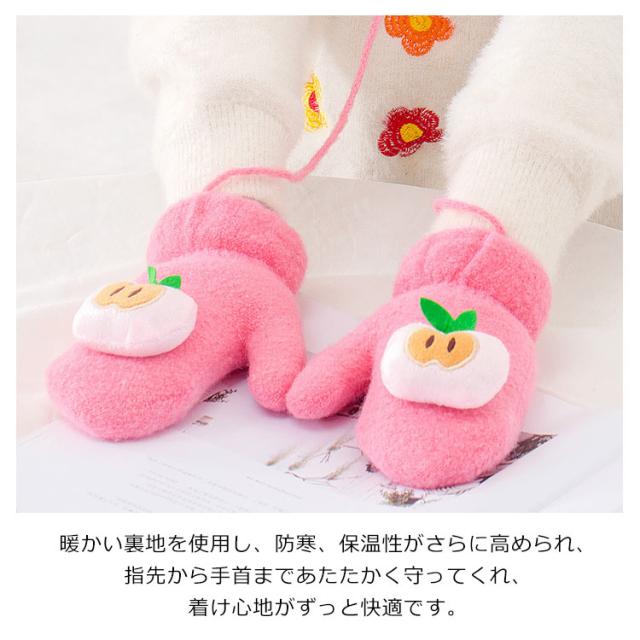 子供用ミトン 手袋 防寒 キッズ 可愛い 果物 防寒手袋 紐付き 厚手 裏起毛 暖かい 保温 防風 女の子 男の子 子供 幼稚