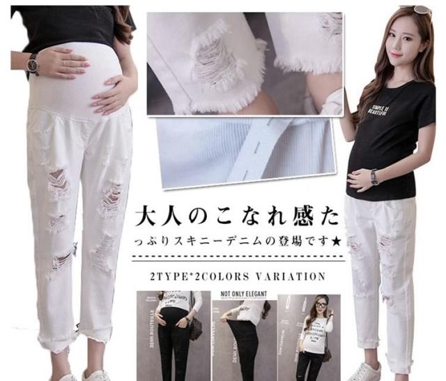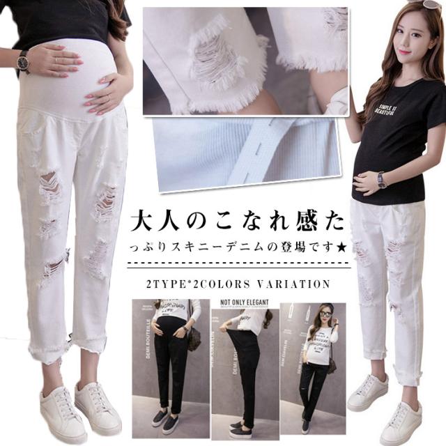 パンツ デニムパンツ マタニティ デニム マタニティパンツ マタニティダメージデニム ジーンズ スキニー パンツ デニム 9分丈 マタニティ
