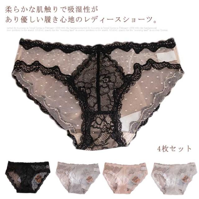 送料無料 4枚セット レディースショーツ レースショーツ ランジェリー 下着 ショーツ 総レース 刺繍レース セクシーショーツ 透け感 柔らか ひびかない レディース インナー