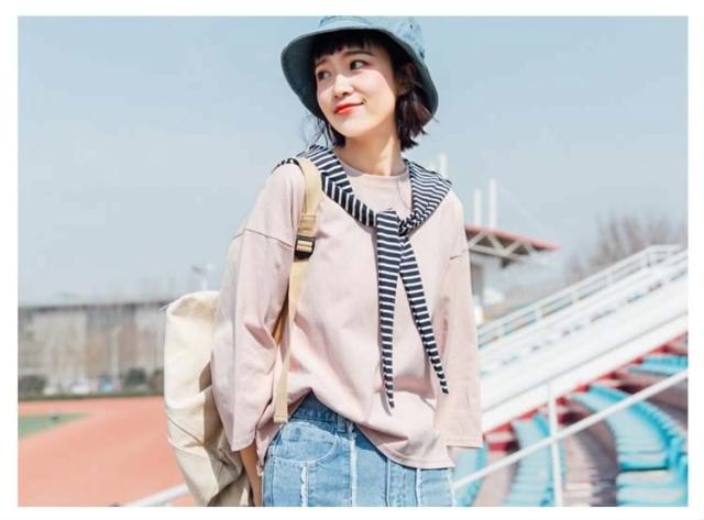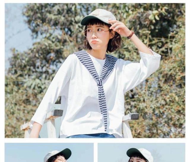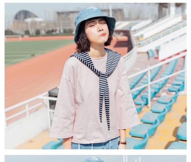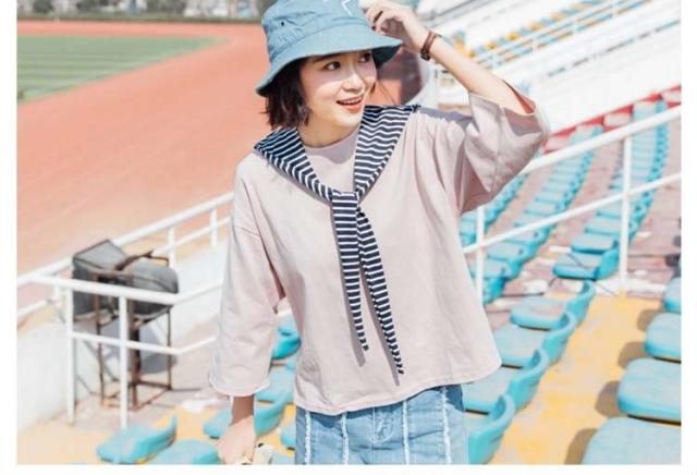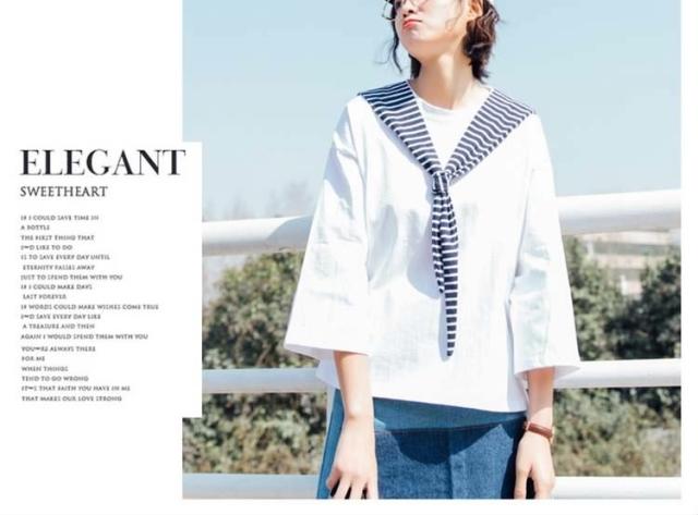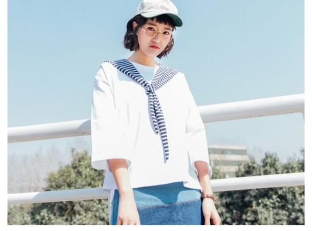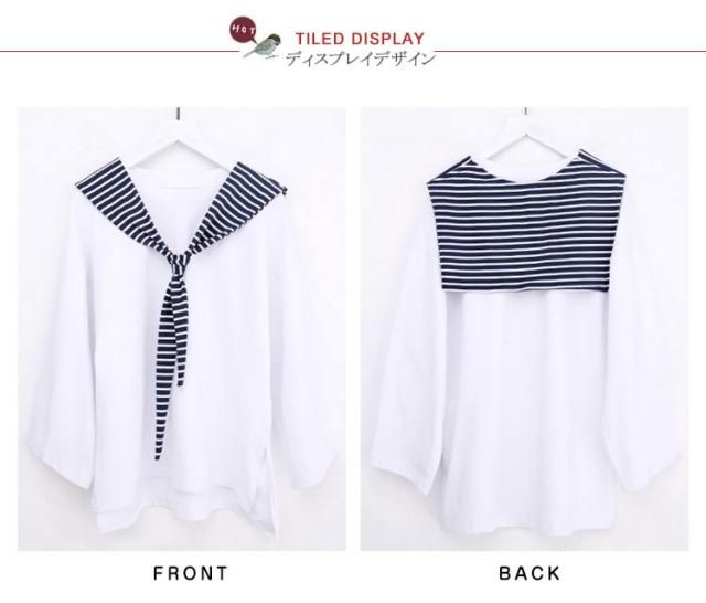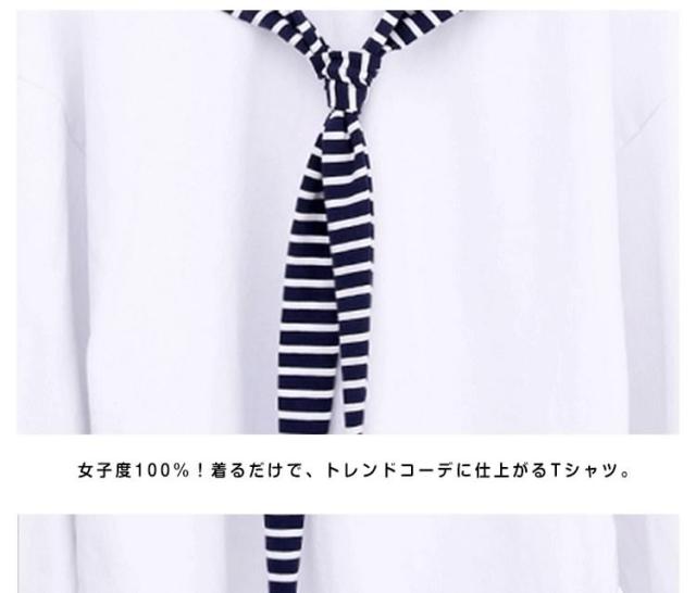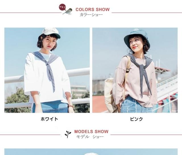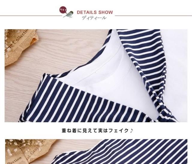 森ガール セーラー風 Tシャツ 7分袖 マリン風 セーラー襟 Tシャツ レイヤード風 Tシャツ クールネック 半袖 重ね着風 レイヤード Tシャツ