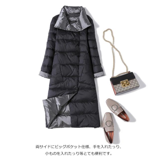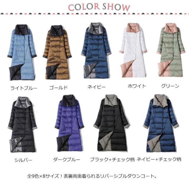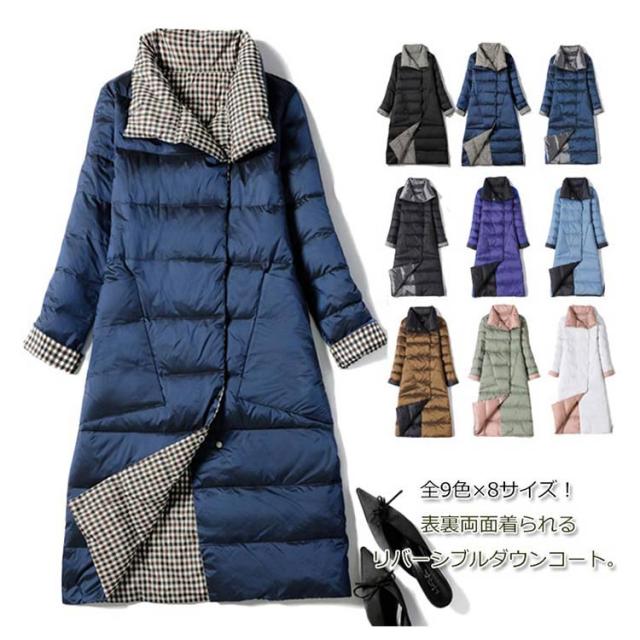 9色展開!ダウンコート レディース 軽量 リバーシブル アウター ロングコート 薄手 ロング丈 スリム 大きいサイズ キレイめ お洒落 暖かい 防寒 冬
