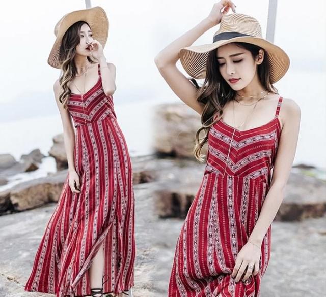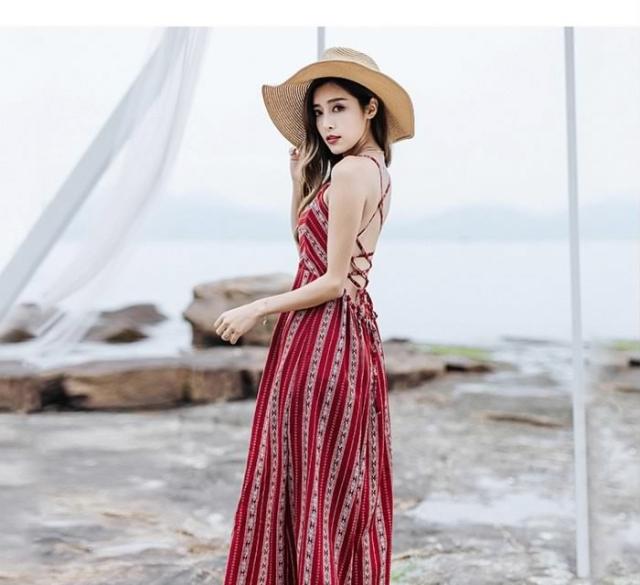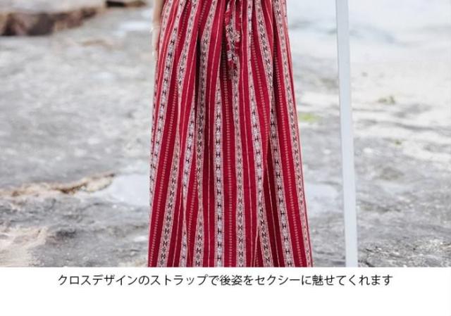 送料無料レディースワンピースロングワンピースマキシワンピース背中空きキャミソールワンピース薄手クロスストラップスリット入りボヘミ