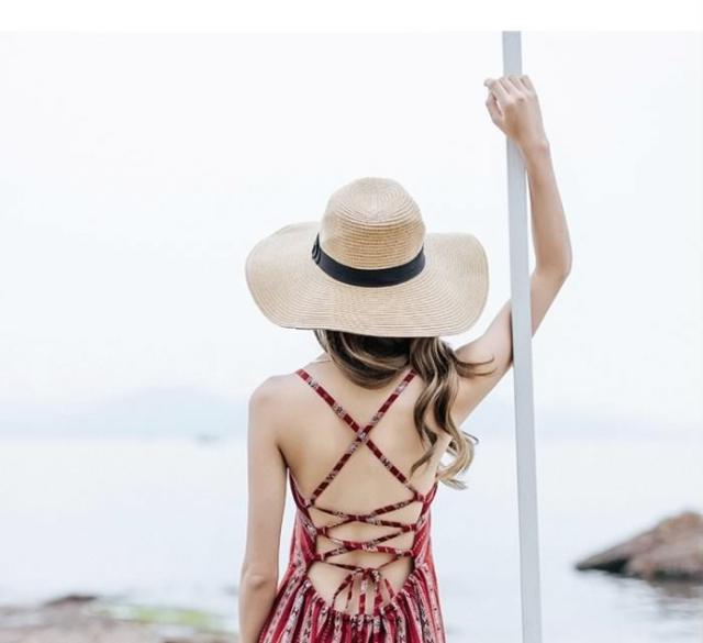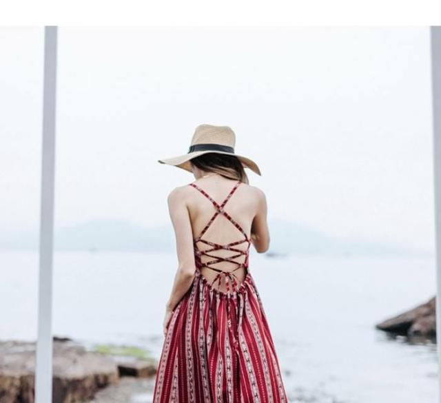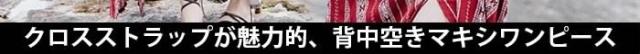 背中空きマキシワンピースクロスストラップが魅力的