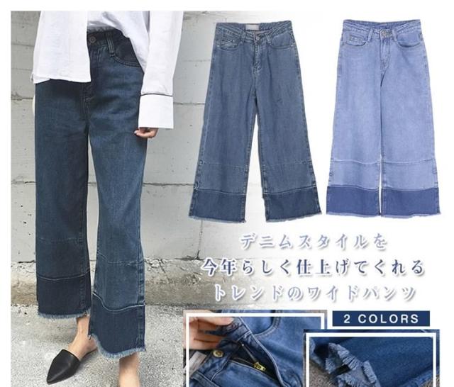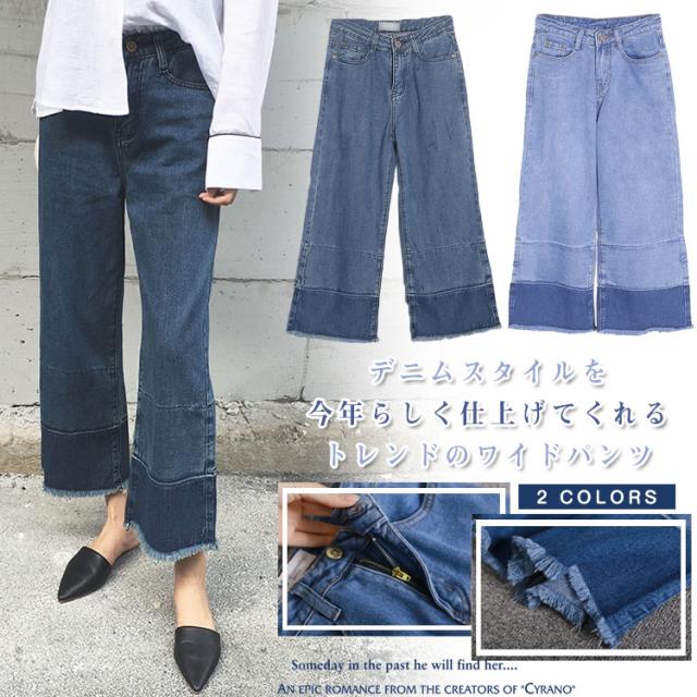 切りっぱなし デニム ワイドパンツ デニム ガウチョパンツ