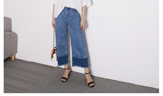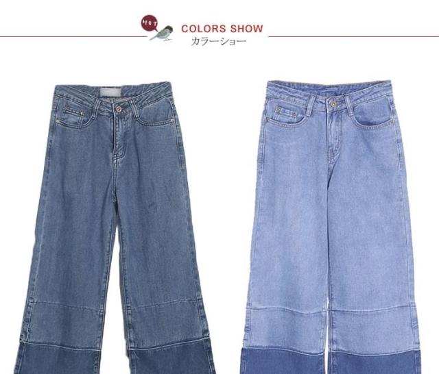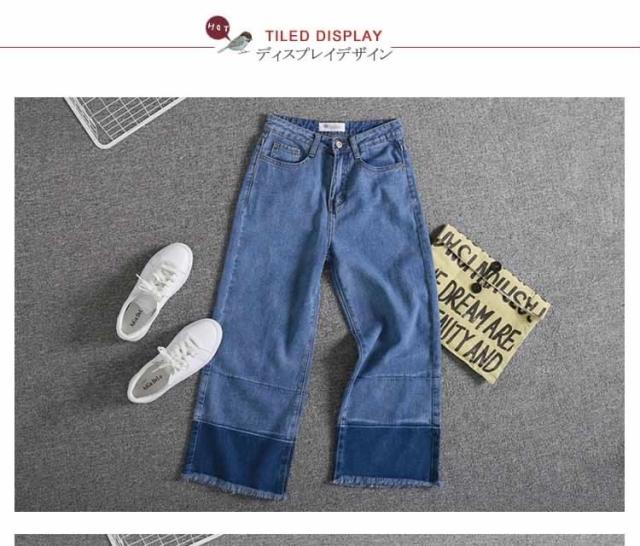 切りっぱなし デニム ワイドパンツ デニム ガウチョパンツ パッチワーク デニムパンツ デニム ストレートパンツ デニムパンツ 大人 デニ