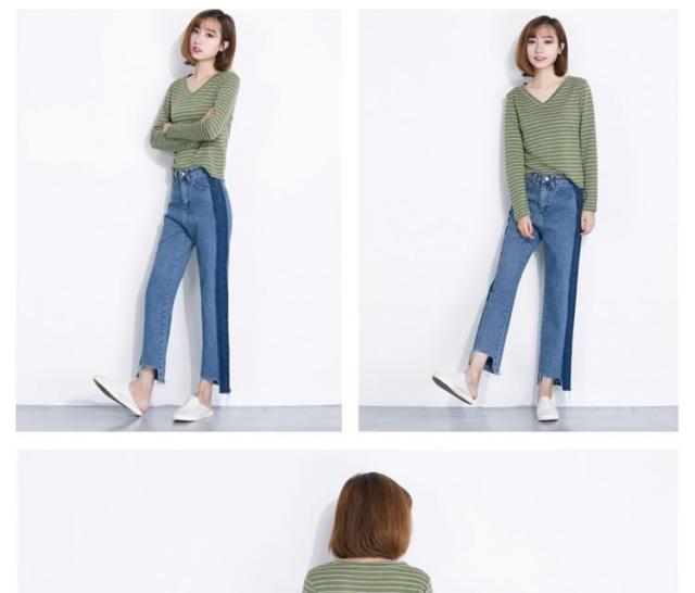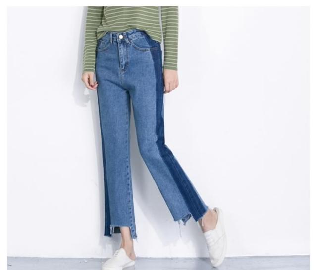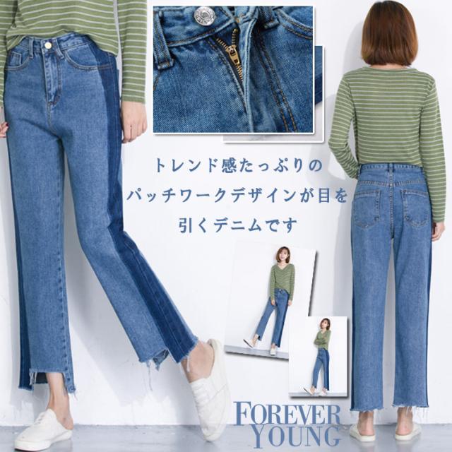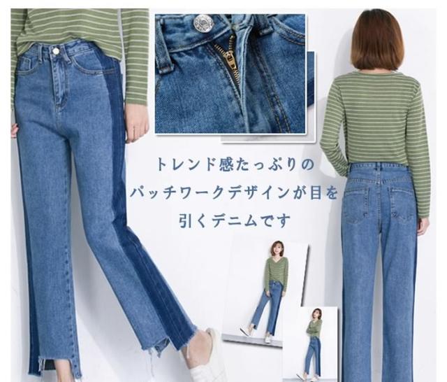 デニム ストレートパンツ パッチワーク デニムパンツ