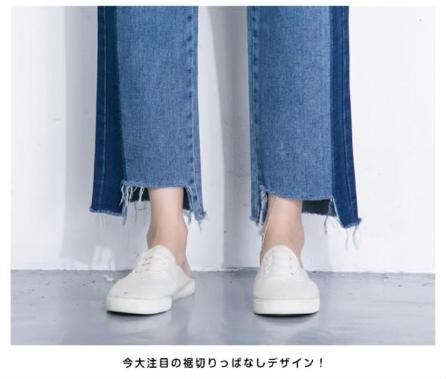 デニム ストレートパンツ パッチワークデザイン デニムパンツ パッチワーク デニム ワイドパンツ ガウチョパンツ デニムパンツ 切りっぱ