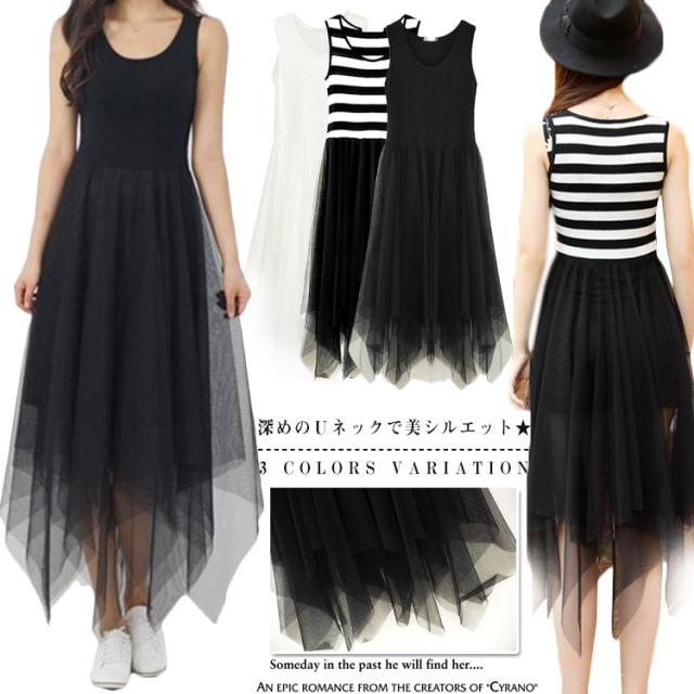 送料無料ドッキングワンピース キャミワンピース マキシワンピース フレアワンピース 切り替え シフォン チュール ワンピース マキシ丈
