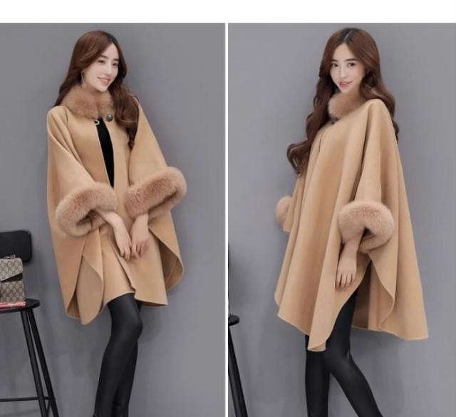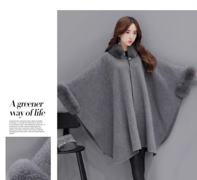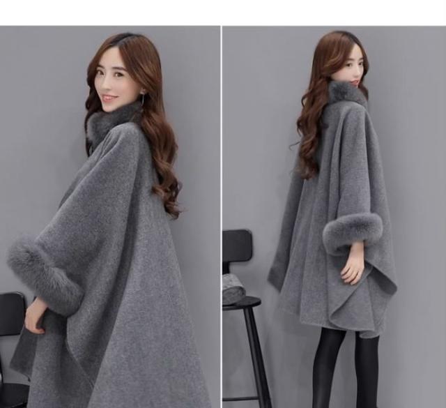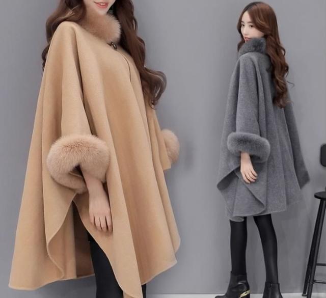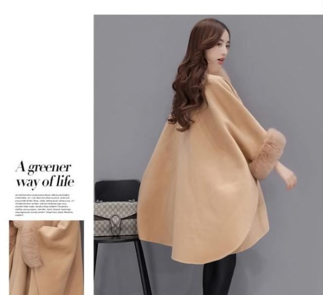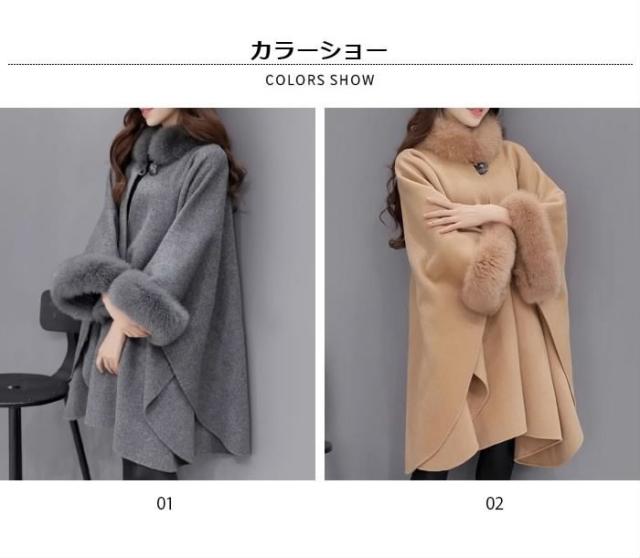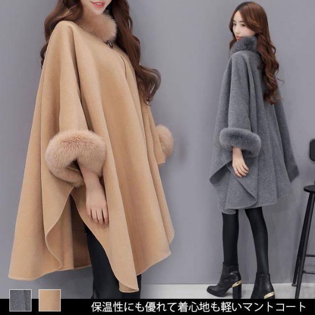 送料無料レディースマントコートコートアウターフェイクファー付きカジュアルコートポンチョコート羽織冬コートロングコート