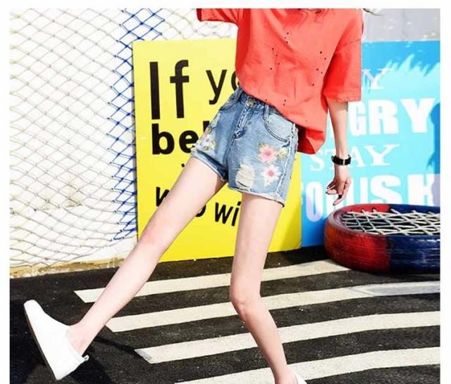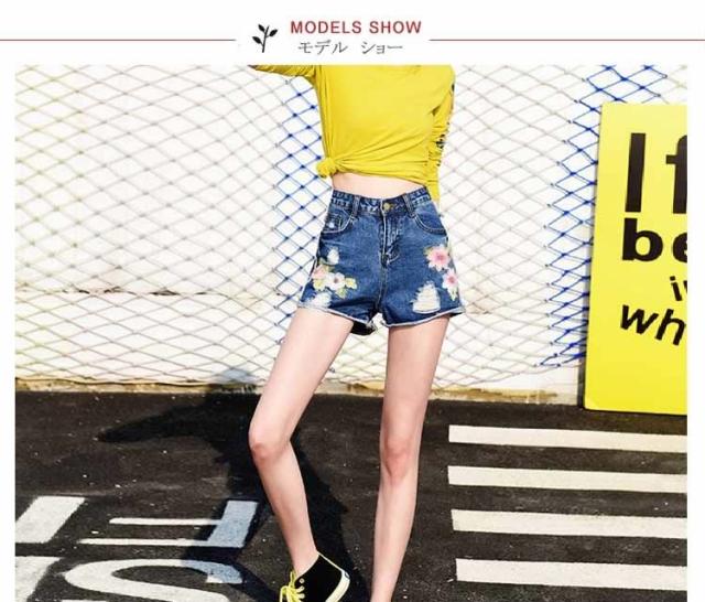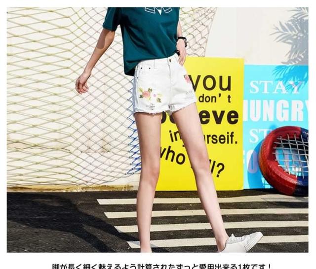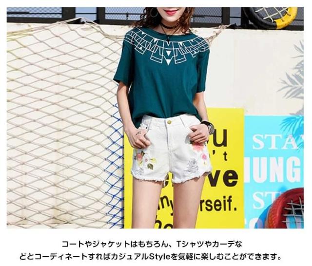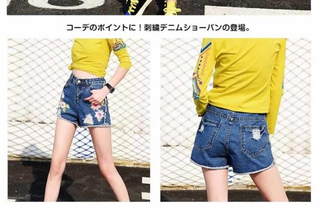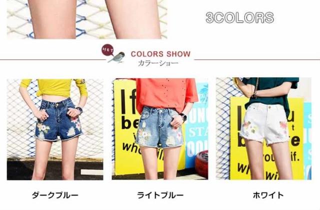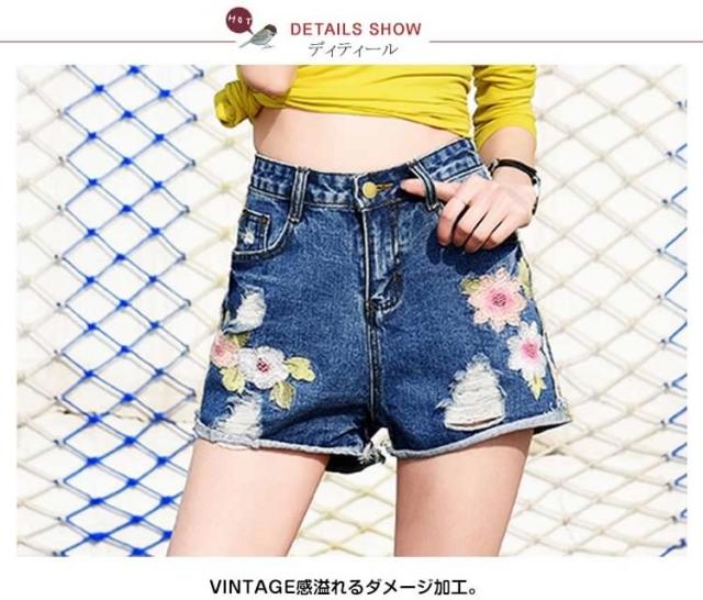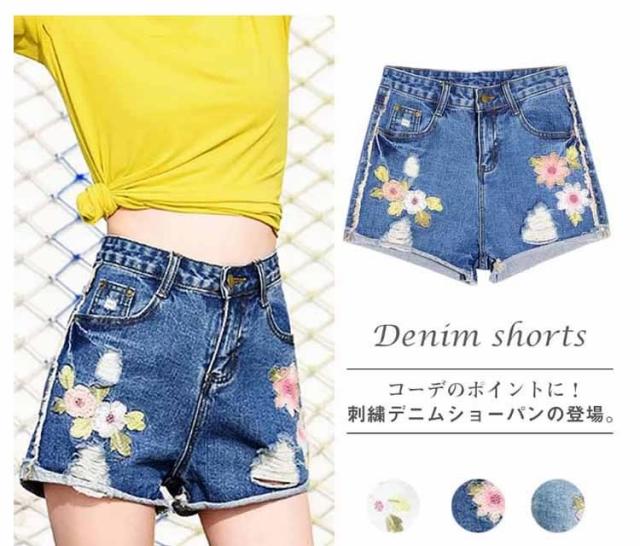 フラワー 刺繍 デニム ショートパンツ ショーパン 花柄 刺繍 デニムパンツ ジーンズ ショーパン デニム ダメージデニム ダメージ ショー