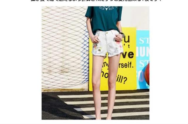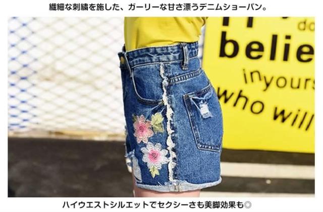フラワー 刺繍 デニム ショートパンツ ショーパン