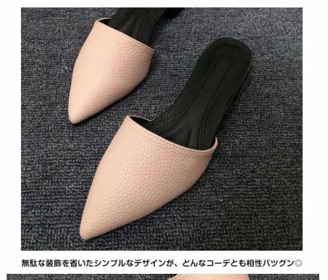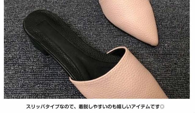 ポインテッドトゥ スリッパサンダル リアルレザー バブーシュ サンダル 牛革 ローファー風 スリッパ サンダル フラットシューズ スリッパ