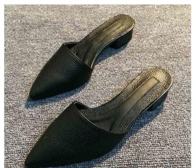 ポインテッドトゥ スリッパサンダル リアルレザー