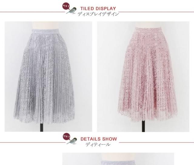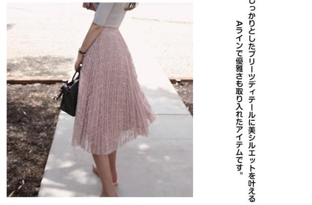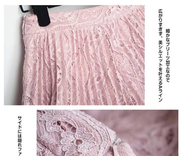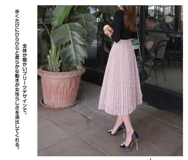 丈も素材も文句なし!総レース プリーツスカート レディーススカート レーススカート ミディア丈 ミモレ丈スカート フラワー レー