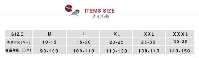 | サイズについての説明 | M 身長対応90-100cm 体重対応10-15kg L 身長対応100-110cm 体重対応15-20kg XL 身長対応110-130cm 体重対応20-25kg XXL 身長対応130-140cm 体重対応25-30kg XXXL 身長対応140-150cm 体重対応30-35kg |