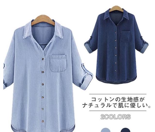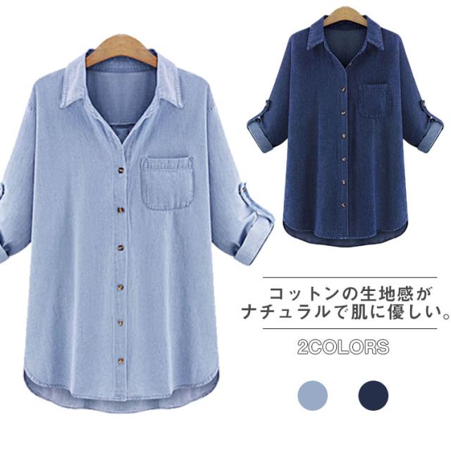 デニム シャツ 長袖 デニムシャツ ロールアップ可 ダンガリー