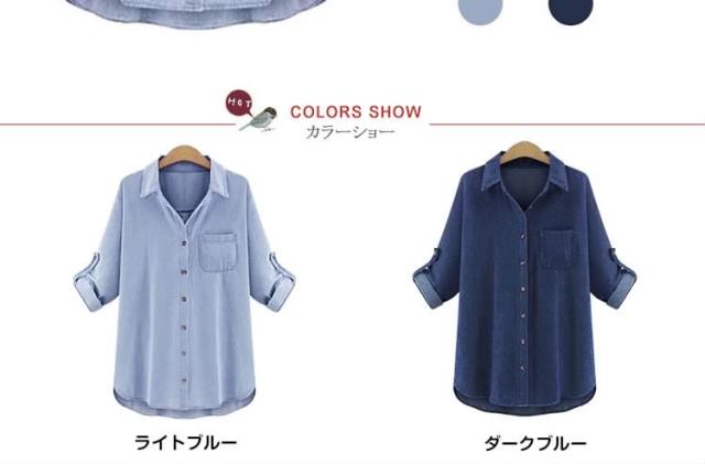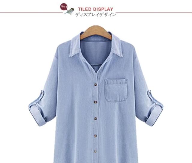 ロールアップデニムシャツ レディース シャツ ブラウス デニムシャツ ロング デニム ロングシャツ オーバーサイズ ゆったり 長