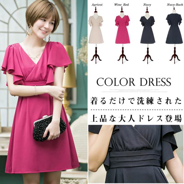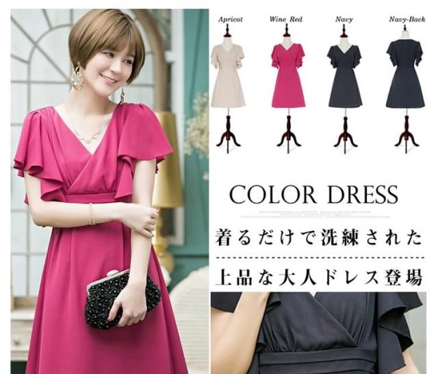 パーティドレス ドレス ワンピース 半袖 袖あり レディース フォーマル 大人 Aライン