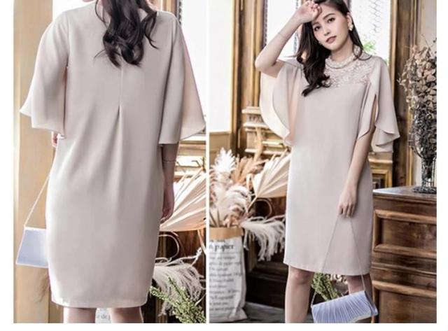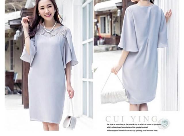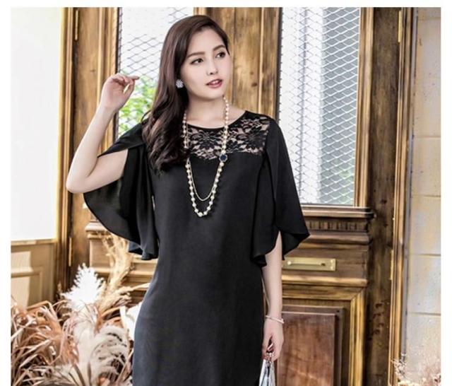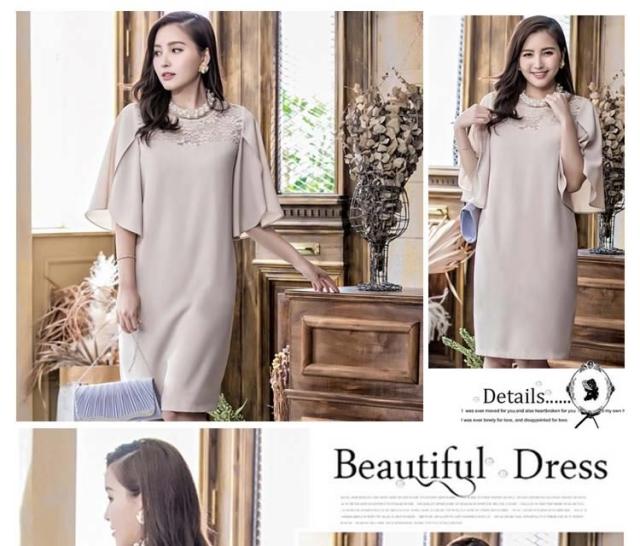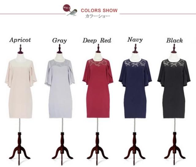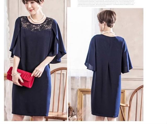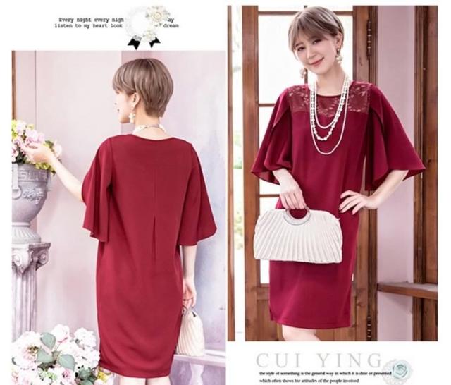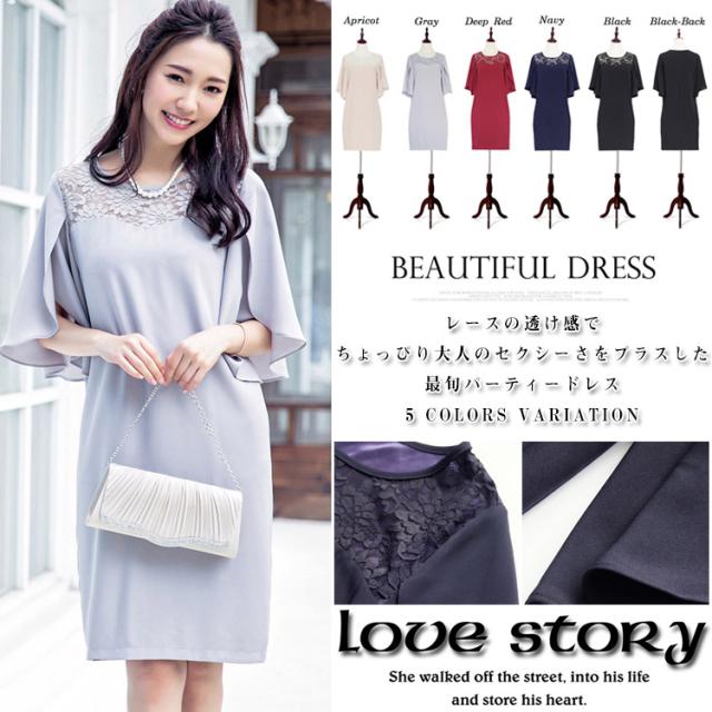 ふんわり袖 パーティードレス 大きサイズ 結婚式ドレス お呼ばれドレス ワンピース ドレス レース切替 エレガントワンピース 膝