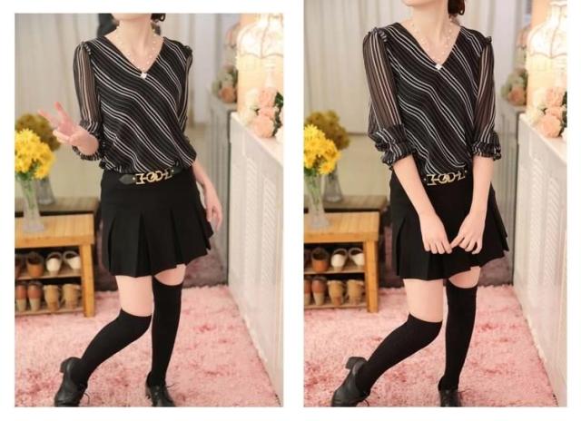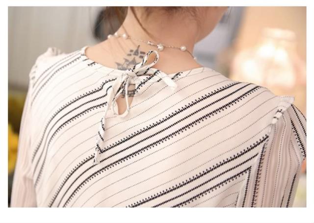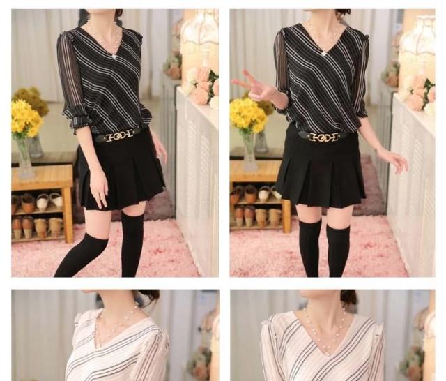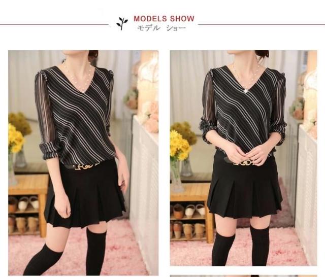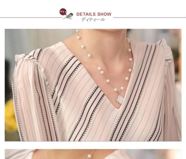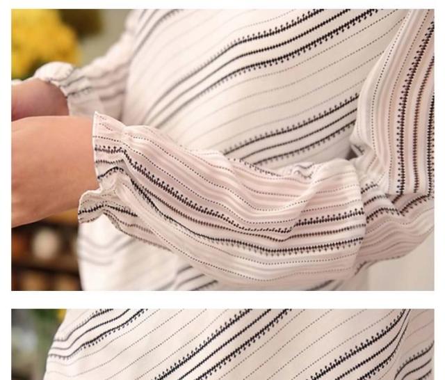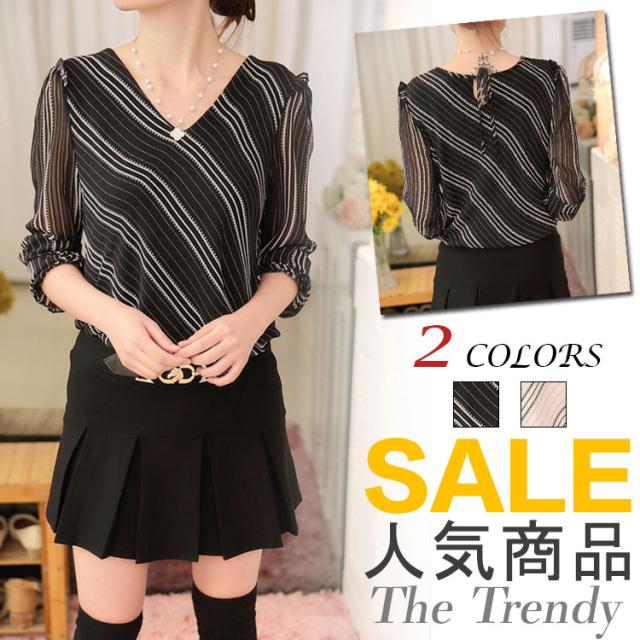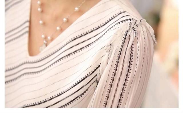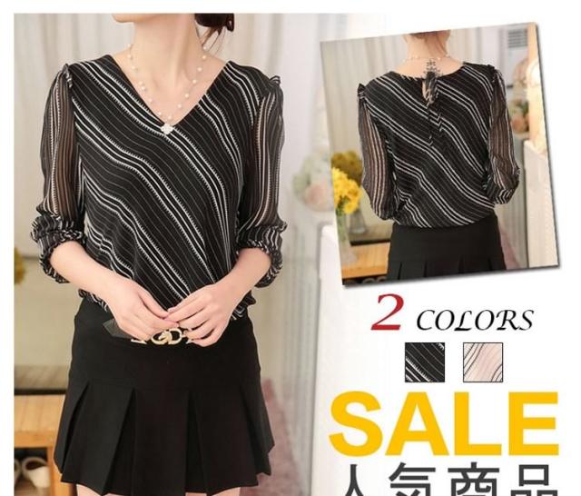 長袖シフォンブラウス ブラウス シフォントップス Vネック ブラウス シャツ 長袖 ストライプ柄 通勤 レディース