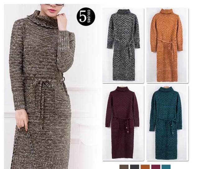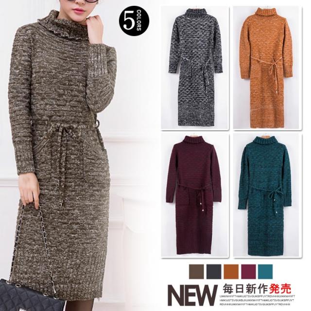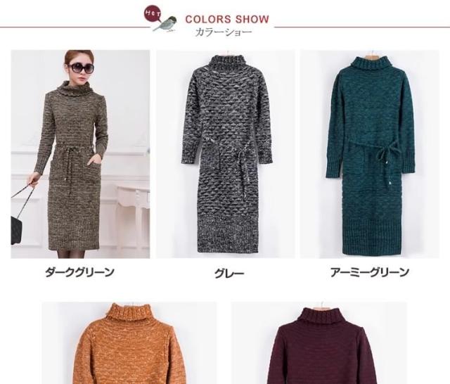 1枚で着れちゃう♪タートルネックであったかニットワンピ タートルネック ワンピース