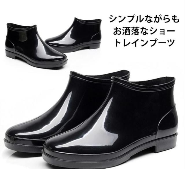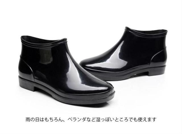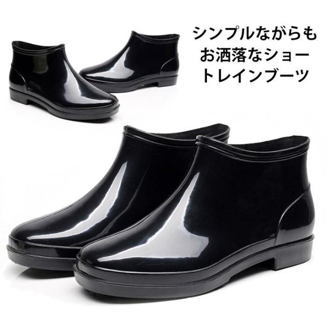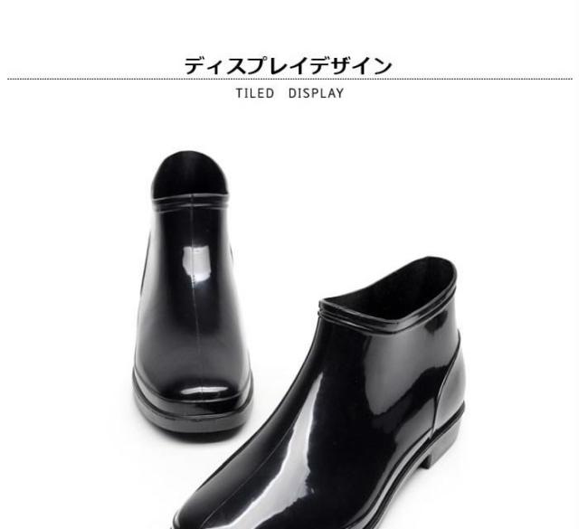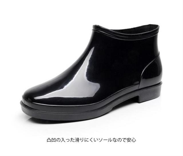 送料無料メンズレインブーツレインシューズショートブーツ防水スノーブーツショートエナメル調無地表面撥水滑りにくい履きやすい楽チンお
