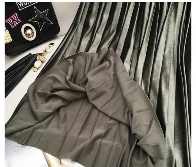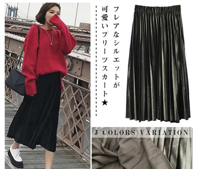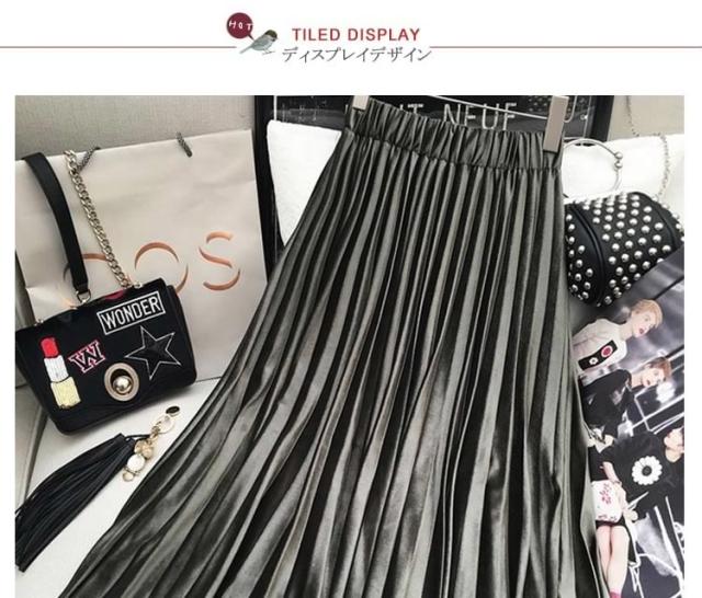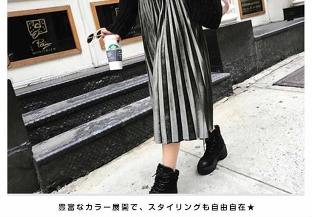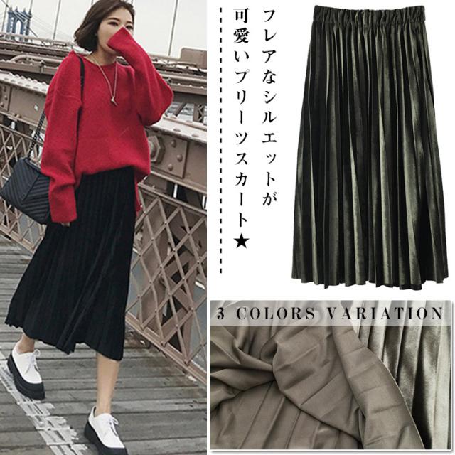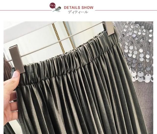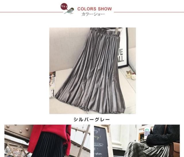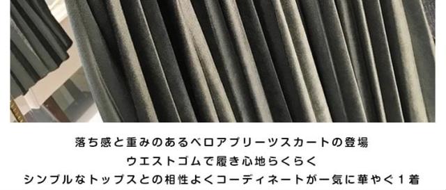 ベロアプリーツスカート/ミモレ丈プリーツスカート/ロング丈/マキシ丈/プリーツスカート/ベロアスカート/レディース/きらきら/無地/ウエ