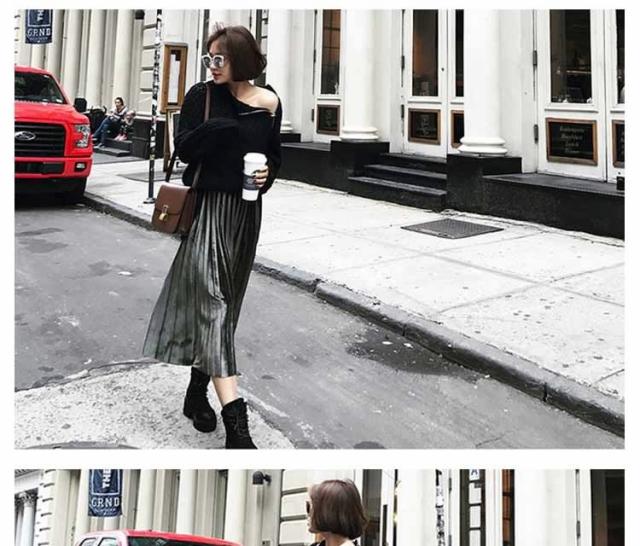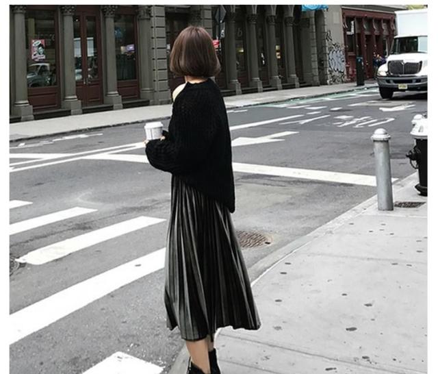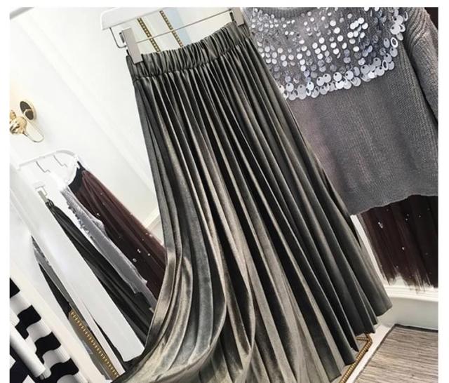 落ち感と重みのあるベロアプリーツスカートの登場♪ベロアプリーツスカート/ミモレ丈プリーツスカート