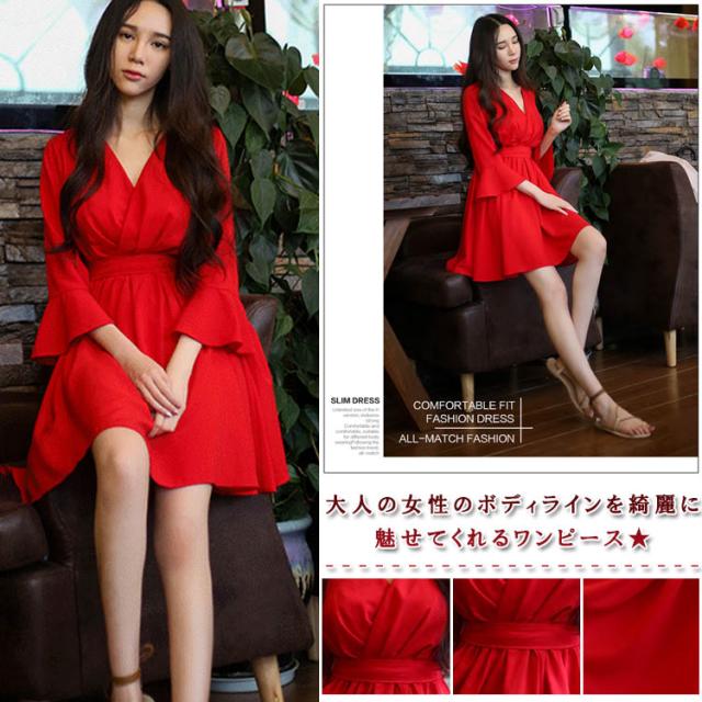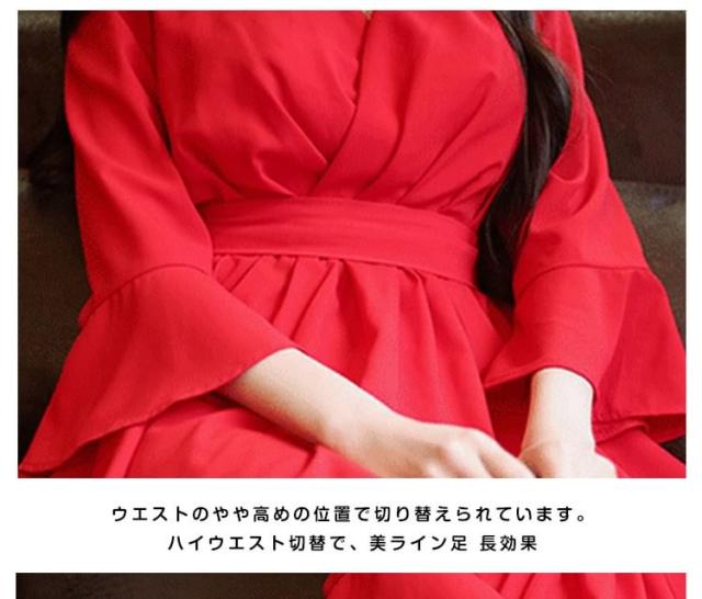 大人カシュクールワンピース シフォンワンピース 膝丈 レディース 七分袖 フレア カシュクールワンピース ジャージーワンピース ショート