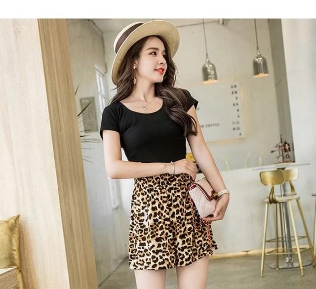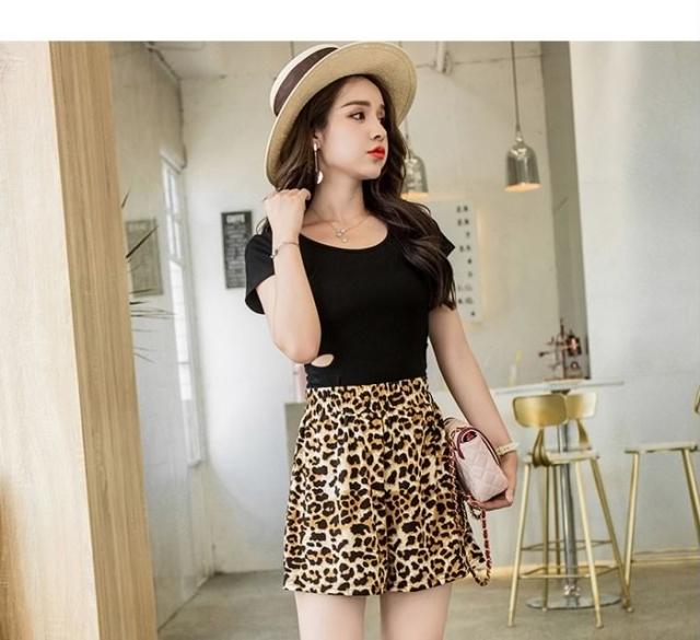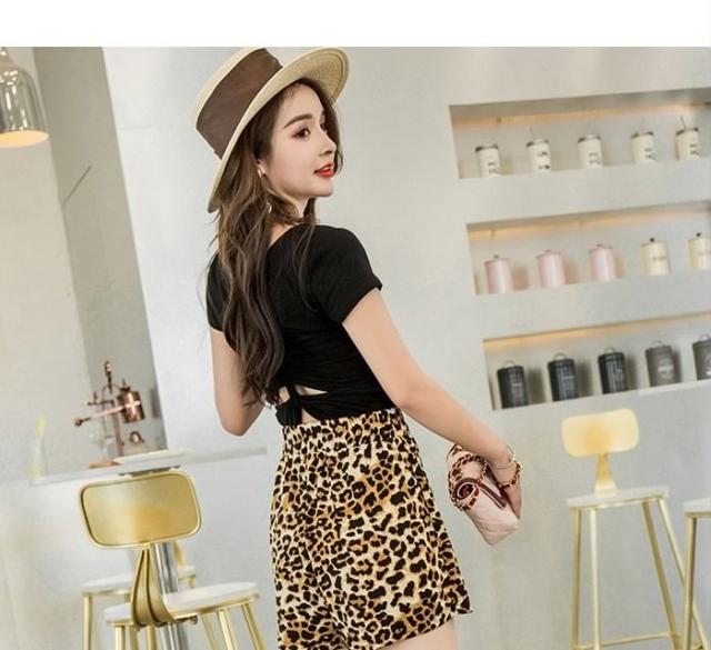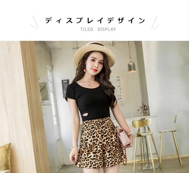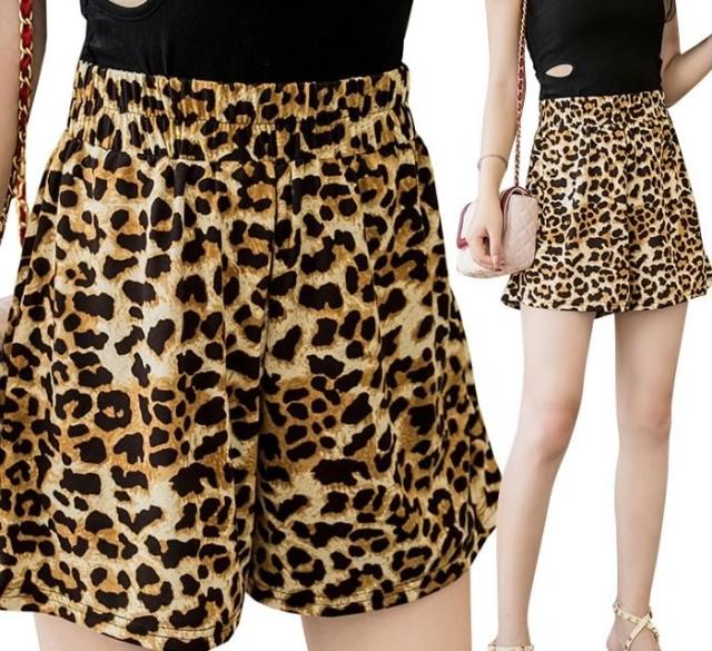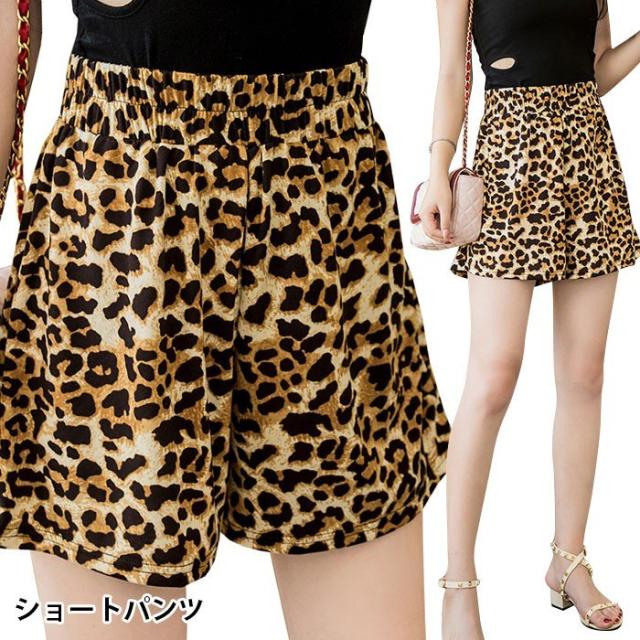送料無料レディースレオパードショート丈ショートパンツウエストゴムフレアパンツゆったりハイウエストカジュアルお洒落トレンド個性的秋