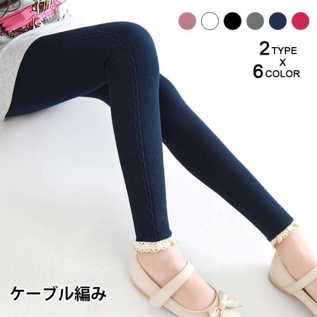 送料無料子供服レギンススパッツ女の子ロング丈レギパンレースケーブル編みカラバリ純色フィットスタイル伸縮性ボトムス可愛い秋新作