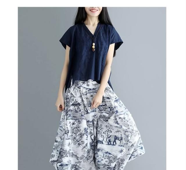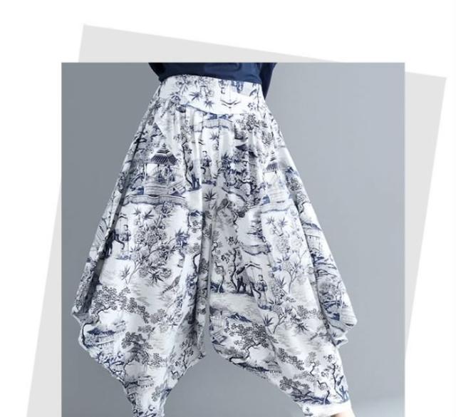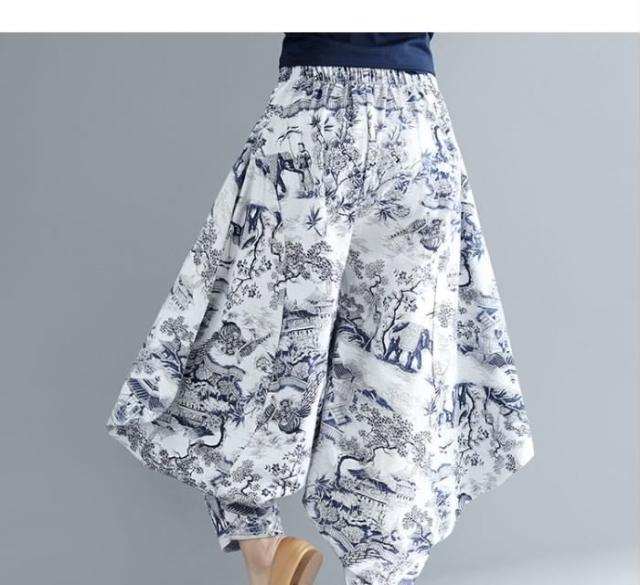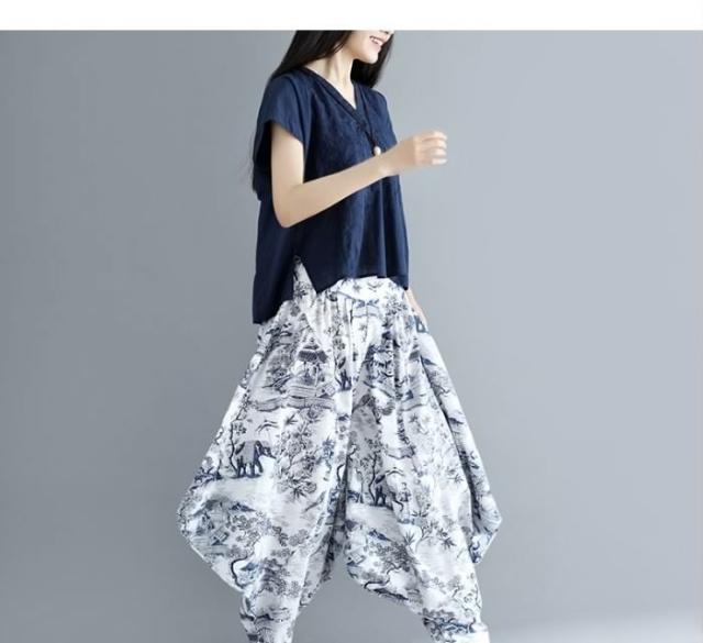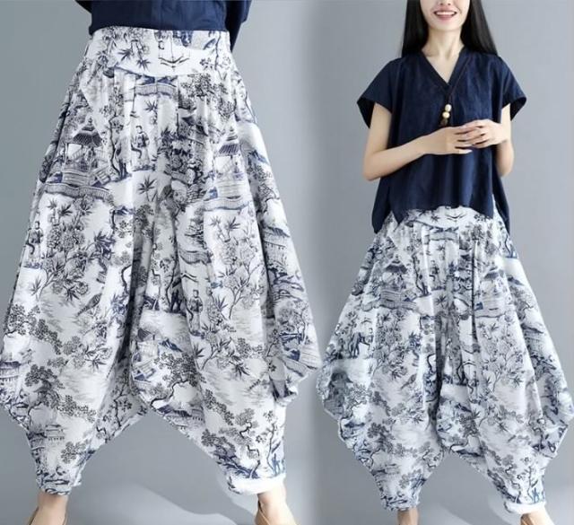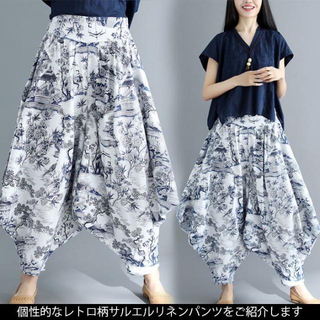 個性的なレトロ柄サルエルリネンパンツをご紹介します
