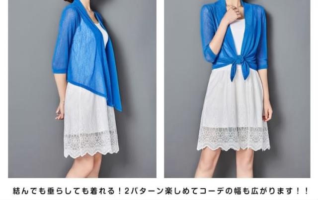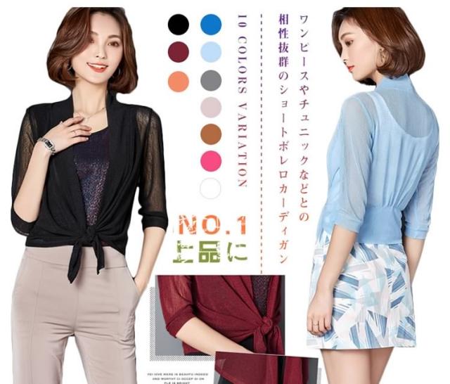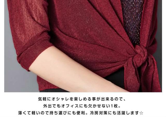 ボレロ カーディガン 前結び UVカット 紫外線対策 ボレロカーディガン 裾しばり ショート丈 カーディガン トッパーカーディガン 冷房対策