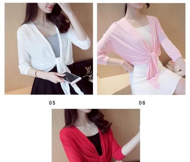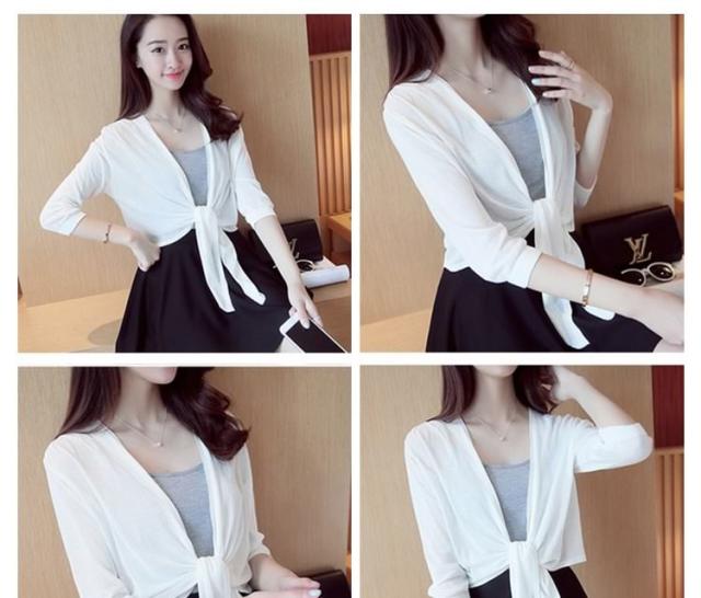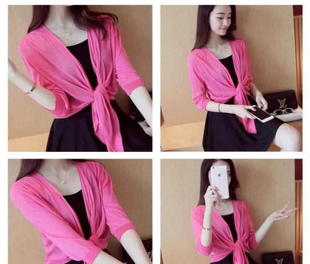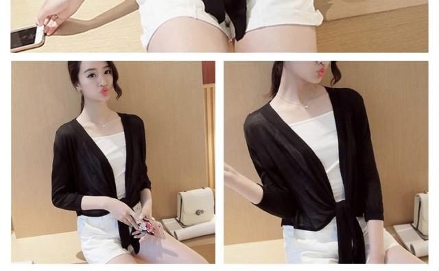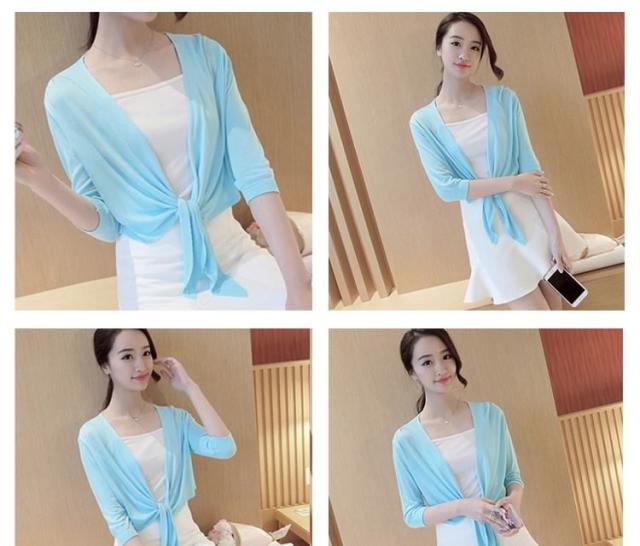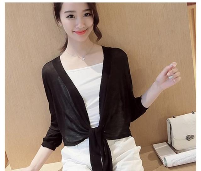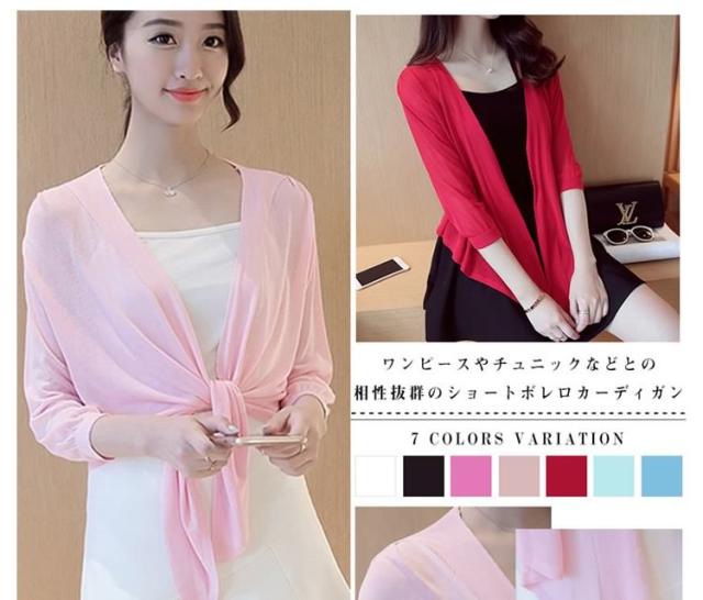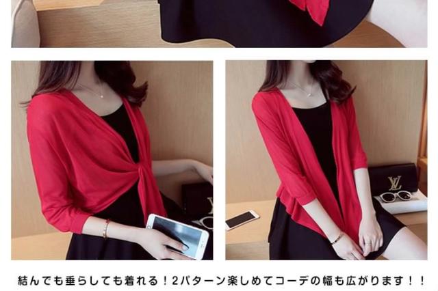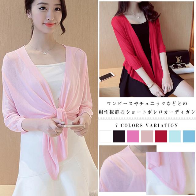 送料無料ボレロカーディガン 裾しばり 前結び カーディガン ショート丈 カーディガン トッパーカーディガン 2way 冷房対策 サマーカーデ