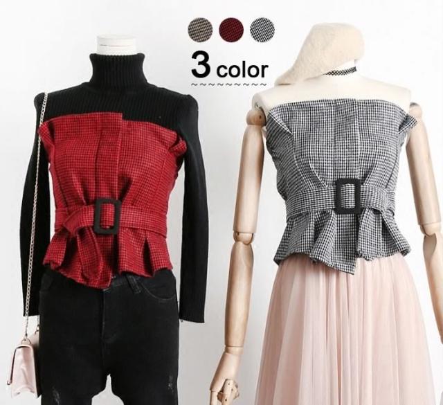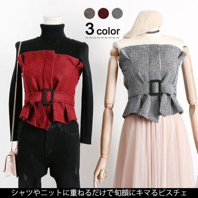 送料無料レディースビスチェチューブトップ千鳥格子ビスチェトップスベアトップショート丈チュニック3カラーベルト付き大人 セクシー