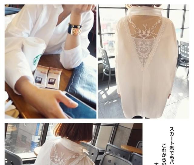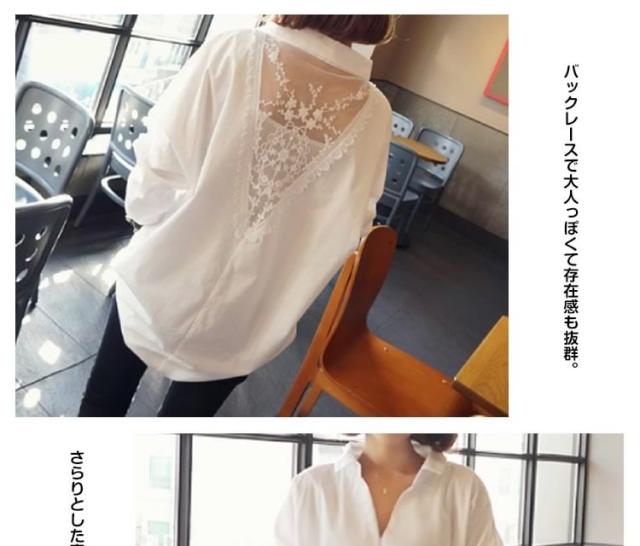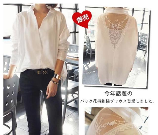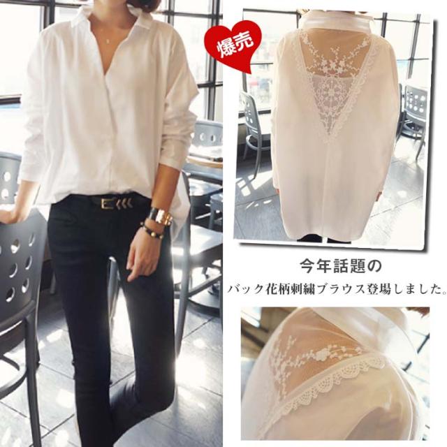 バック刺繍レースブラウス バックレース ブラウス シャツ プルオーバー トップス レディース 刺繍ブラウス 花柄刺繍 レース 長