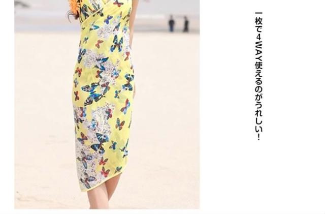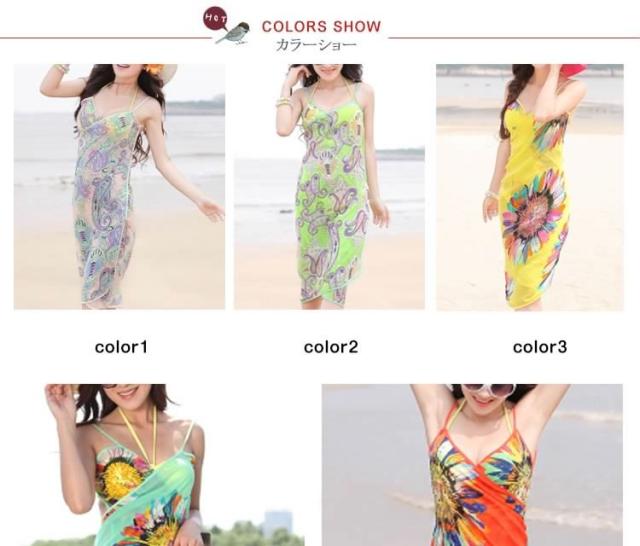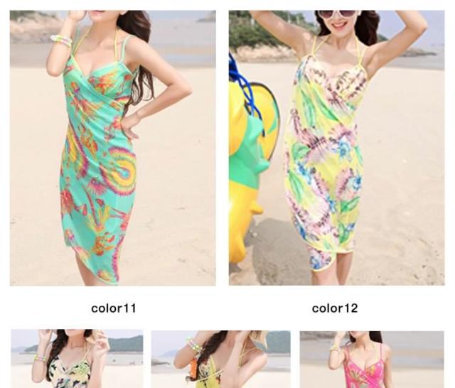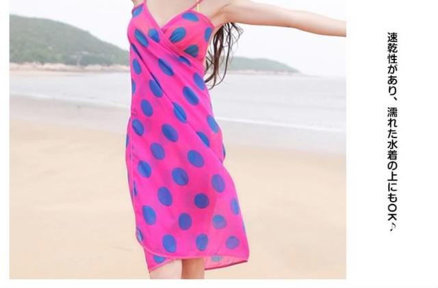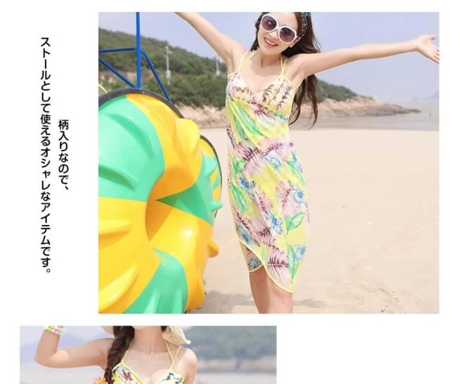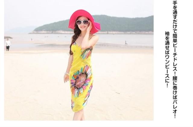 | おしゃれ女子なら絶対に欲しい!夏のビーチ、プールで大活躍な水着ワンピース。手を通すだけで簡単ビーチドレス!腰に巻けばパレオ!袖を通せばワンピースに!気になるお腹や下半身を上手に隠して、水着姿も楽しめる海やプールで役立つアイテム。速乾性があり、濡れた水着の上にもOK♪柄入りなので、ストールとして使えるオシャレなアイテムです。一枚で4WAY使えるのがうれしい! | |