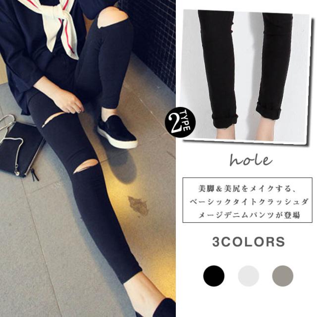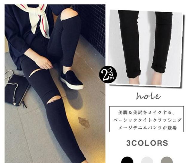 | 美脚&美尻をメイクする、ベーシックタイトクラッシュダメージデニムパンツが登場ダメージ加工も、細身のデザインでカジュアルになりすぎず大人っぽい着こなしに導いてくれますシンプルなTシャツと合わせてラフに着るのも、ガーリーなブラウスなどと合わせてバランスを取るスタイリングもオススメです | |
