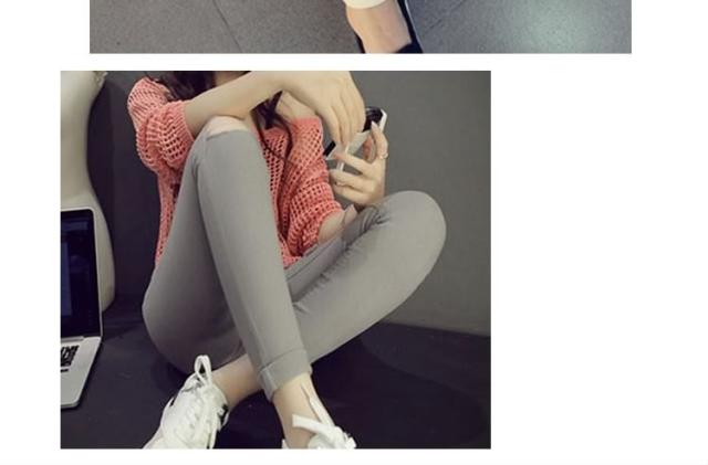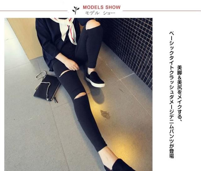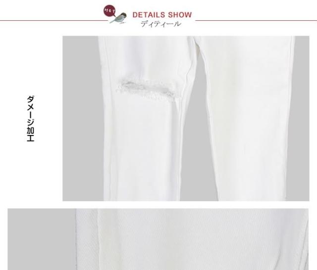 スキニーデニムパンツ 9分丈 レディース ダメージ加工