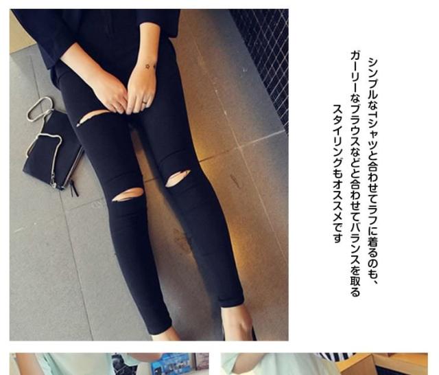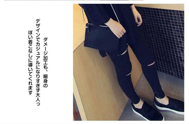 スキニーデニムパンツ デニムパンツ 9分丈 レディース ボトムス スリム スキニー レギンス デニム レギパン ダメージ加工 大きいサ