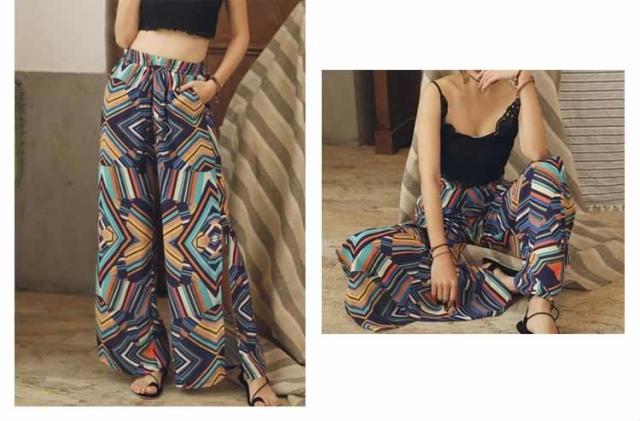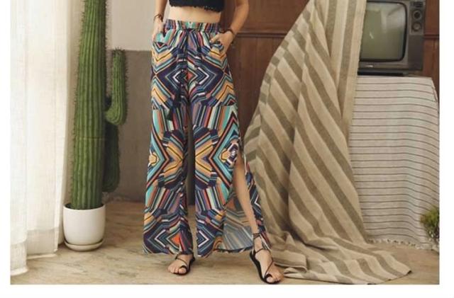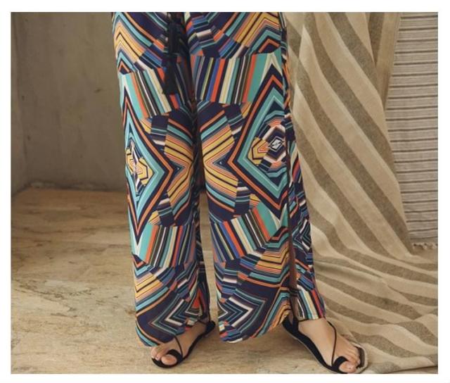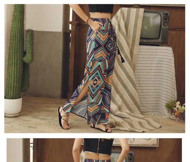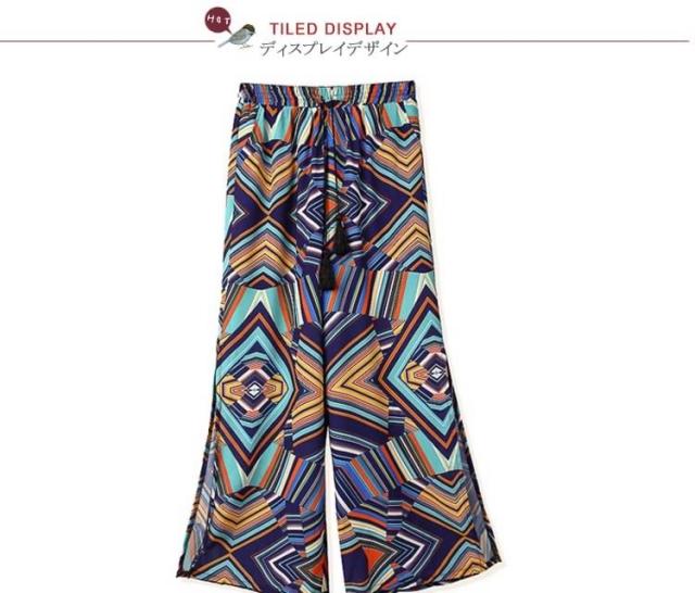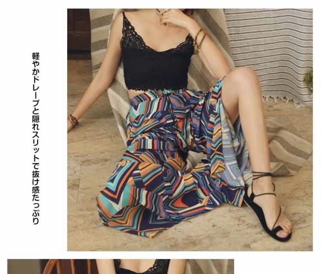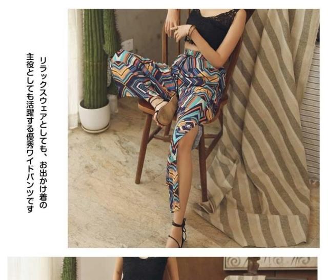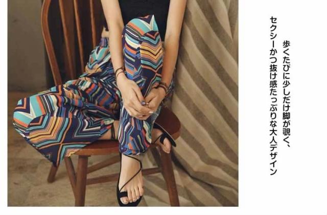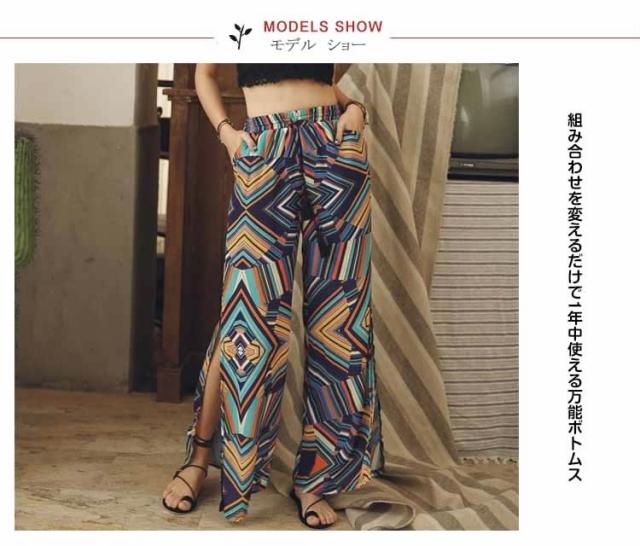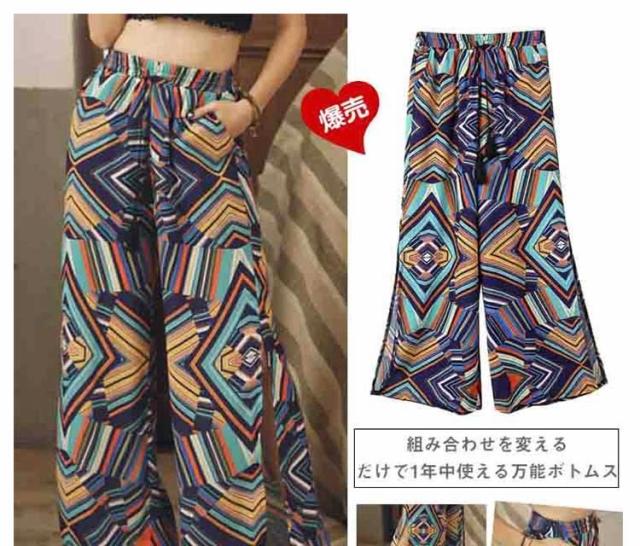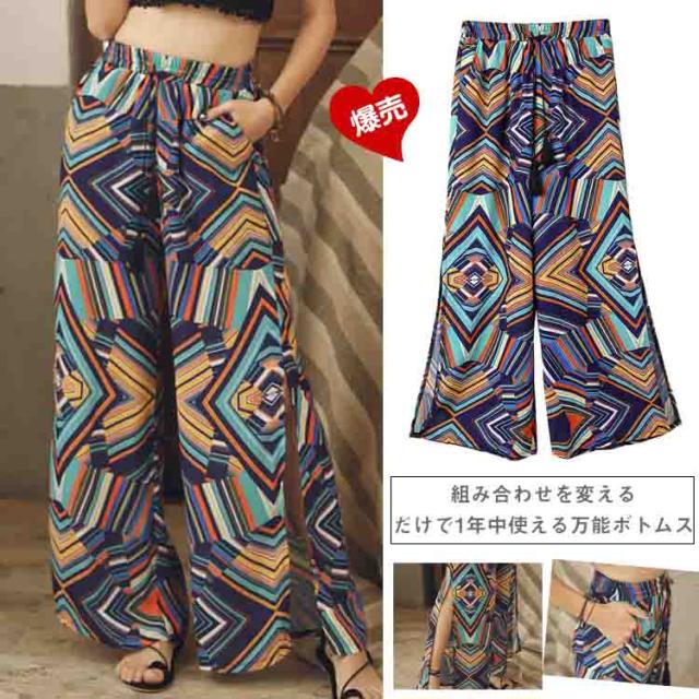 ガウチョパンツ ワイドパンツ ボヘミア風 レディース