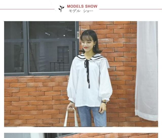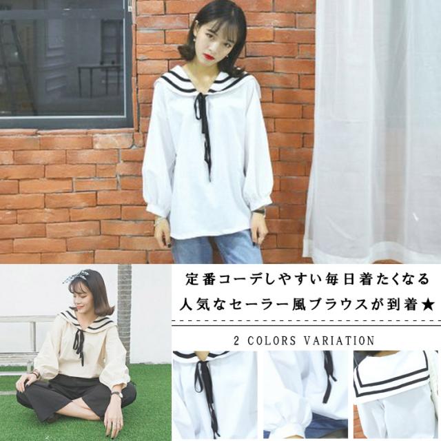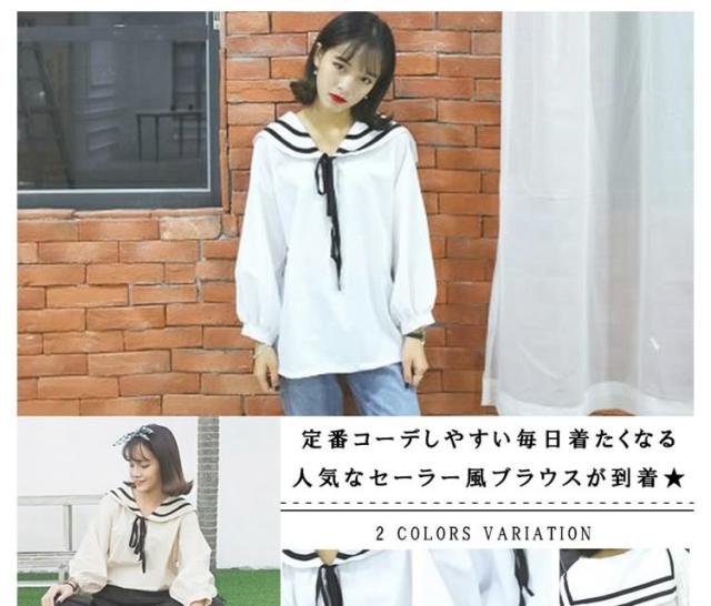 | 定番コーデしやすい毎日着たくなる人気なセーラー風ブラウスが到着★ マリンスタイルは優しい雰囲気を醸し出しとってもCUTE★ガーリー派にもカジュアル派にもオススメです★オシャレで上品なデザインだから普段着にもお出かけにも使える★ | |